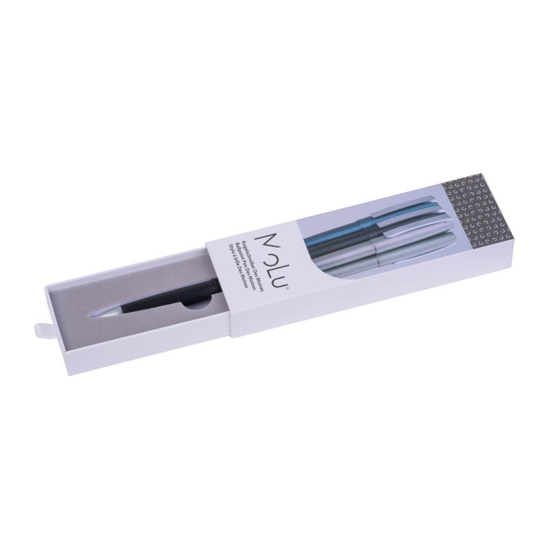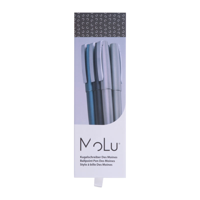 MoLu fém golyóstoll – Letisztult és karakteres. Széles klipsszel és minőségi, cserélhető kék Parker-betéttel. Elegáns, csúsztatható tokban érkezik. Masszív fém szerkezet, precíz kidolgozás.