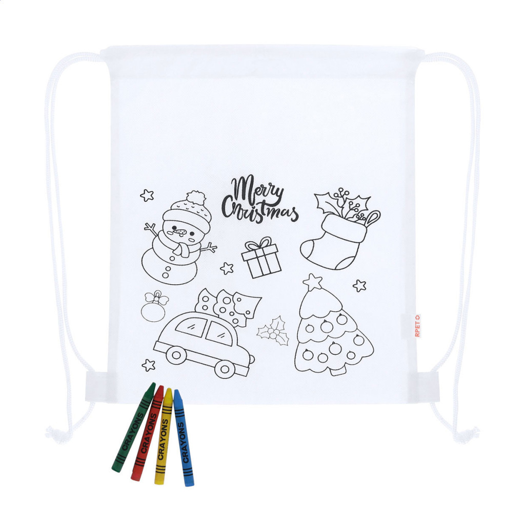 RPET non woven anyagú, színezhető karácsonyi hátizsák gyerekeknek 4 zsírkrétával.