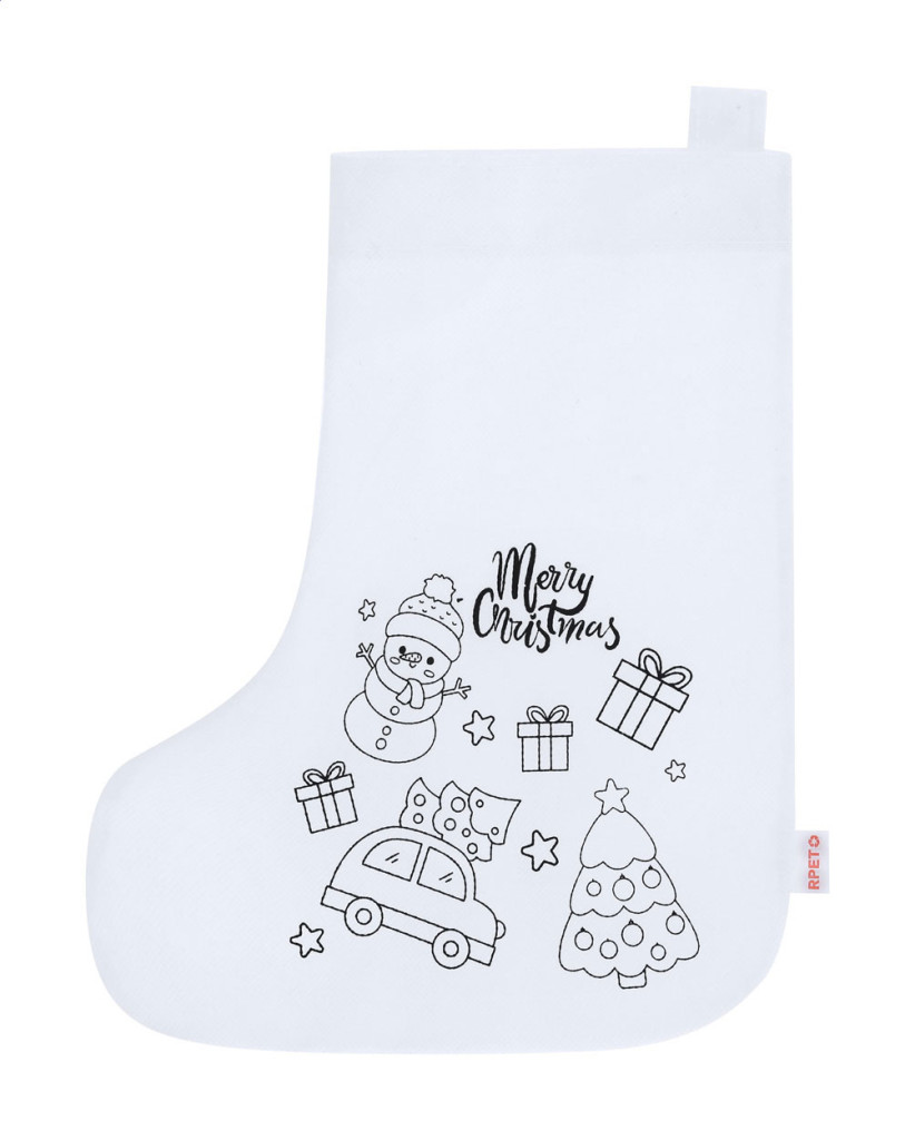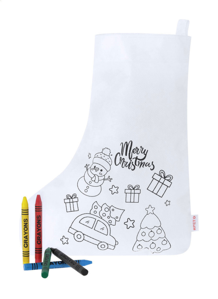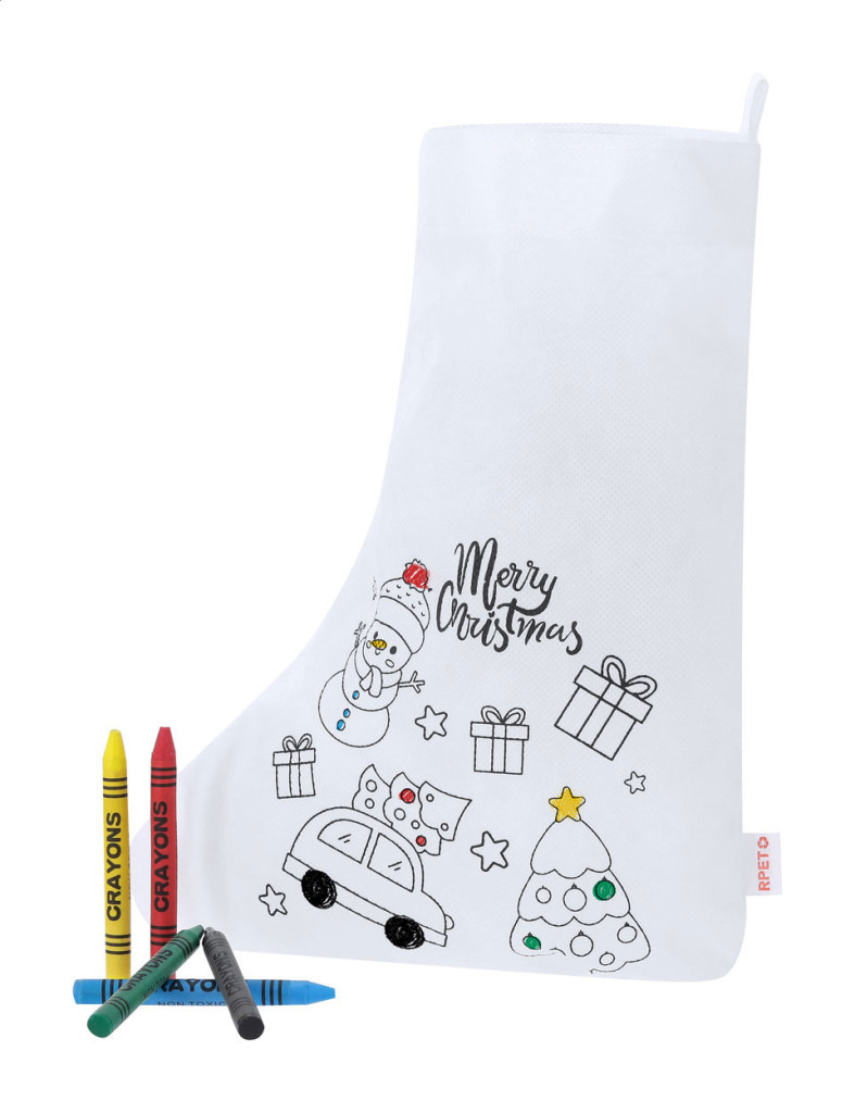 RPET non woven anyagú, színezhető karácsonyi zokni 5 zsírkrétával.