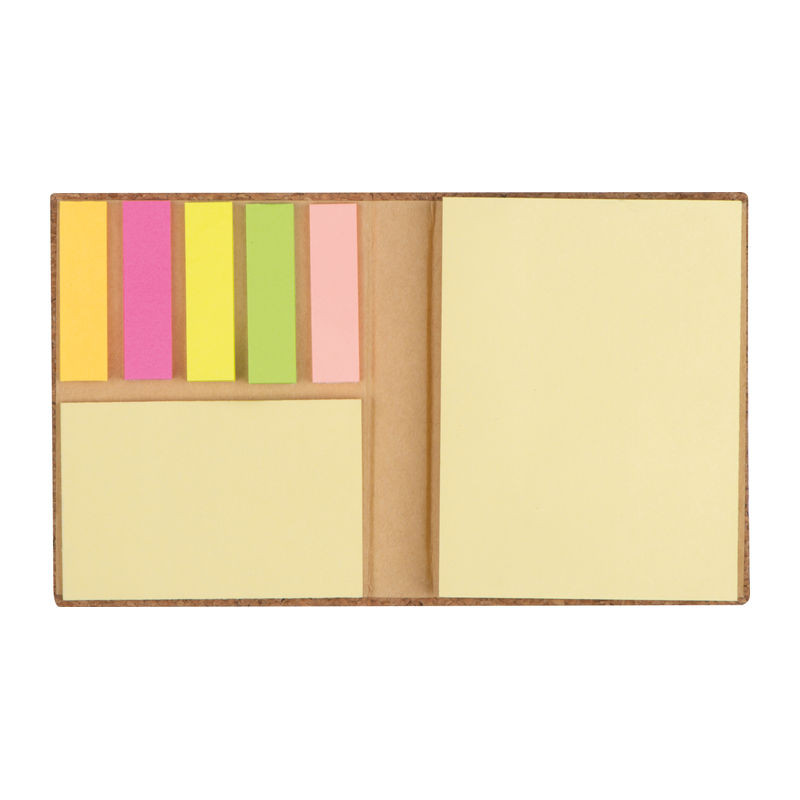 Parafa borítású jegyzettartó, színes öntapadós jelölőcsíkokkal és öntapadó jegyzetlapokkal.