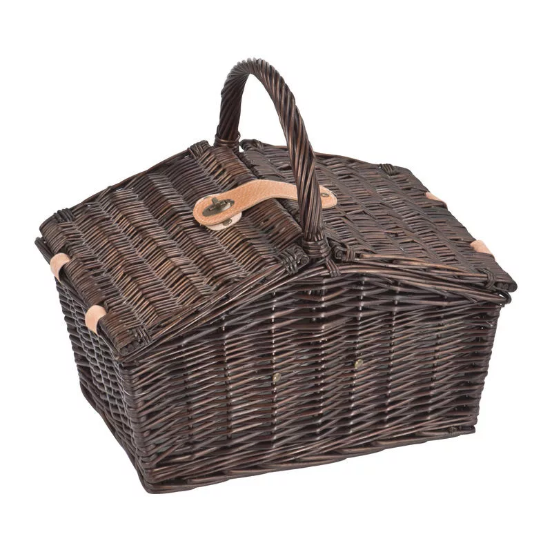 Rattan piknikkosár 2 személyre, műanyag poharakkal, porcelán tányérokkal, 6 darabos evőeszközkészlettel és pincérkéssel. A beépített hűtőtáska gondoskodik az ételek frissen tartásáról. Az emblémázás a kosárhoz külön megvásárolható, 90868 cikkszámú fém bilétával lehetséges.