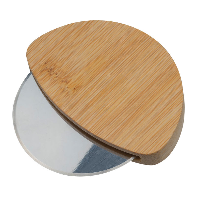 Praktikus pizzavágó bambuszból ergonomikus formával, amely egyszerű használatot biztosít a pizza szép és tiszta vágásához. Rozsdamentes acél penge.