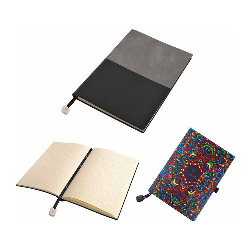 Kétszínű Pierre Cardin jegyzettömb A5-ös méretben, bőr hatású felülettel. A jegyzettömb fémlemezes fényes könyvjelzővel van ellátva, 160 szaggatott vonal oldal, 80g. Méretek: jegyzettömb 14,7×20,8×1,3 cm, csomagolás 20,8×14,9×1,4 cm.