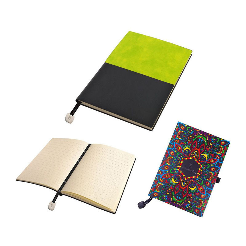 Kétszínű Pierre Cardin jegyzettömb A5-ös méretben, bőr hatású felülettel. A jegyzettömb fémlemezes fényes könyvjelzővel van ellátva, 160 szaggatott vonal oldal, 80g. Méretek: jegyzettömb 14,7×20,8×1,3 cm, csomagolás 20,8×14,9×1,4 cm.