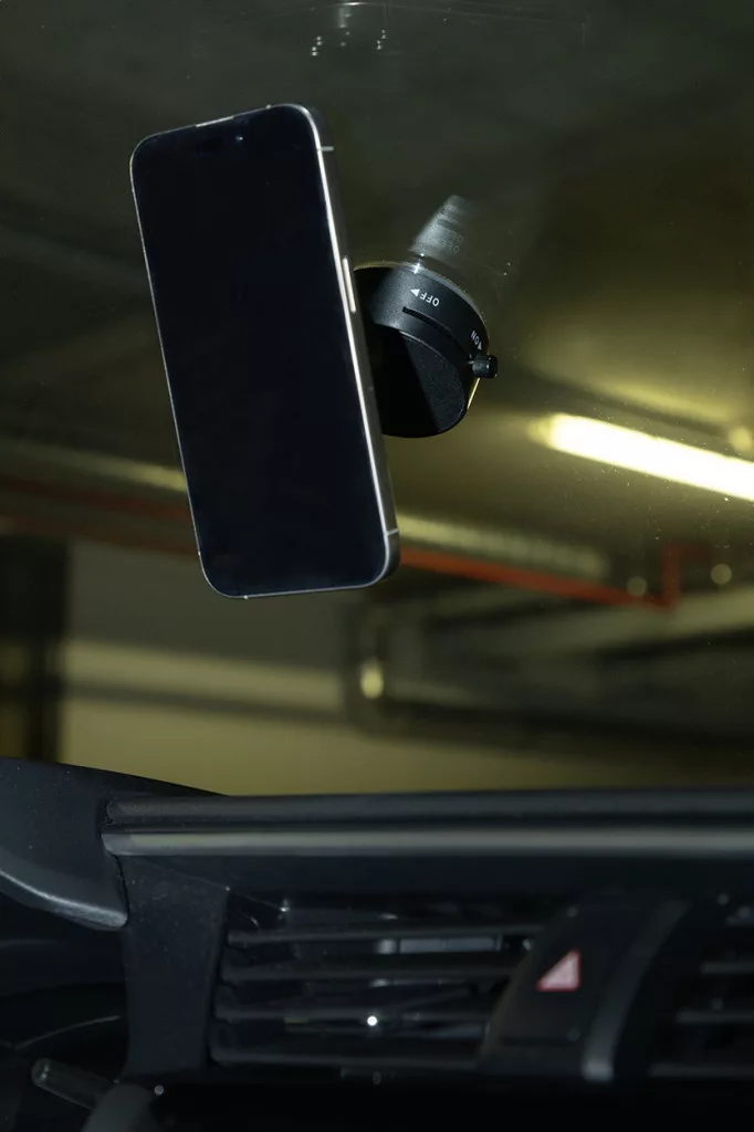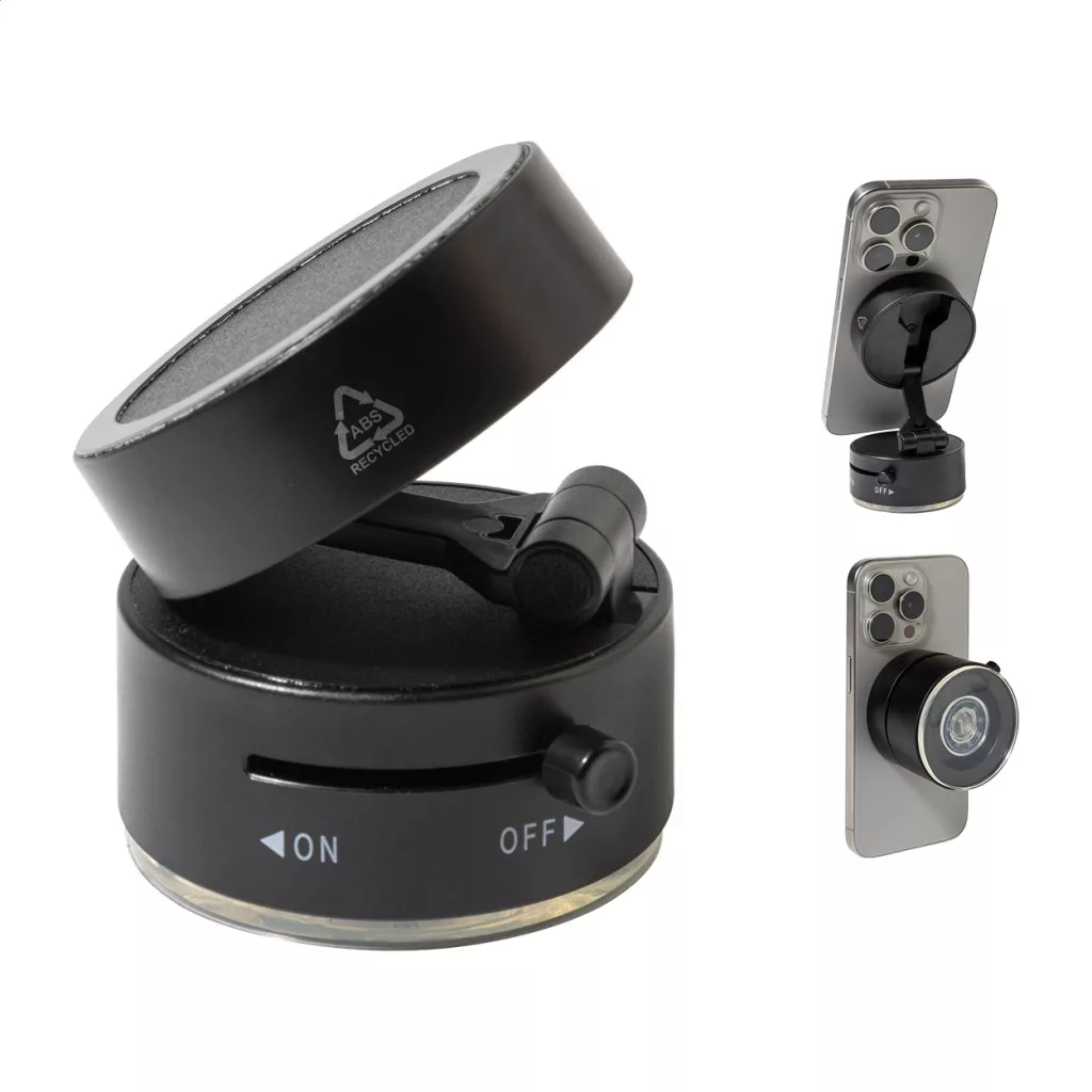 Újrahasznosított ABS mágneses autós mobiltartó vákuumos tapadókoronggal. Öntapadós fémgyűrűvel a mágneses felület nélküli telefonokhoz.