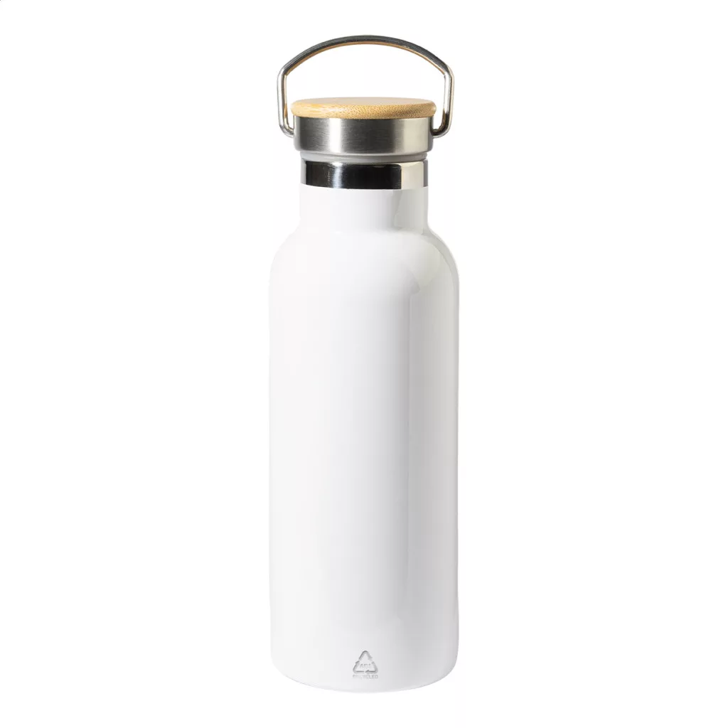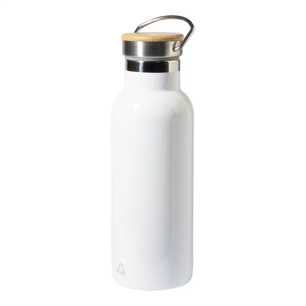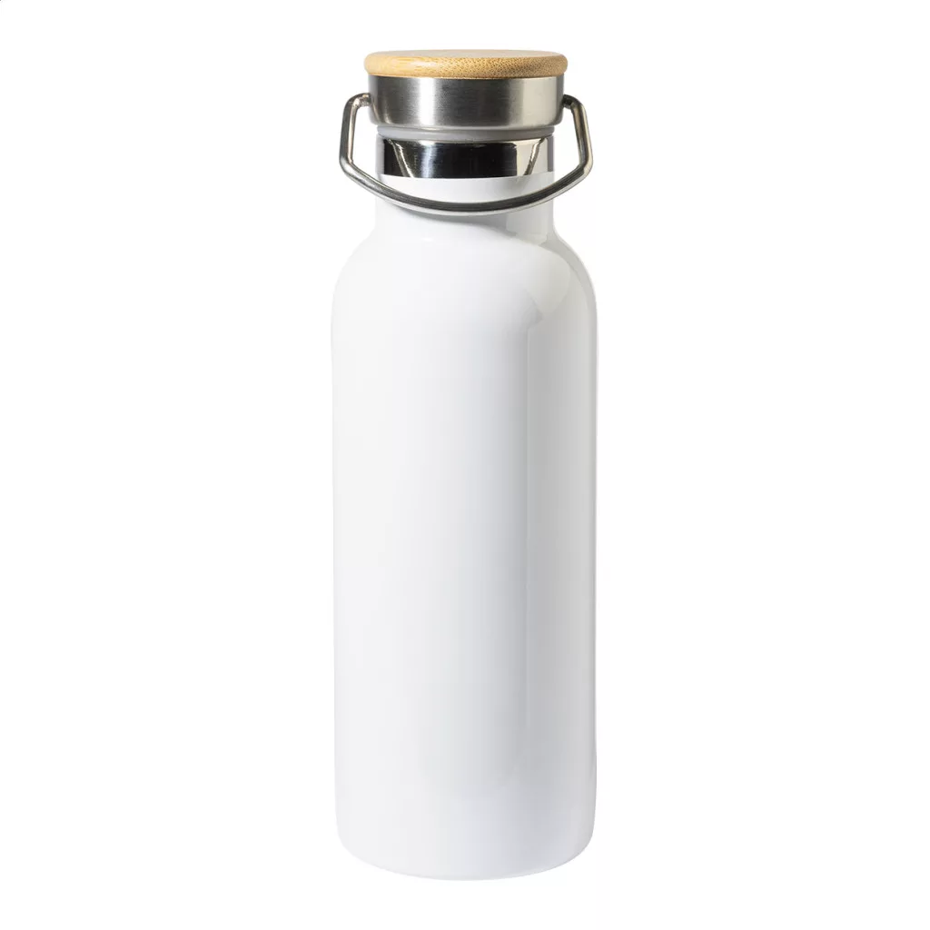 Duplafalú, újrahasznosított rozsdamentes acélból készült, vákuumszigetelt termosz szublimációs nyomtatáshoz, bambusz hordfedéllel. 500 ml.