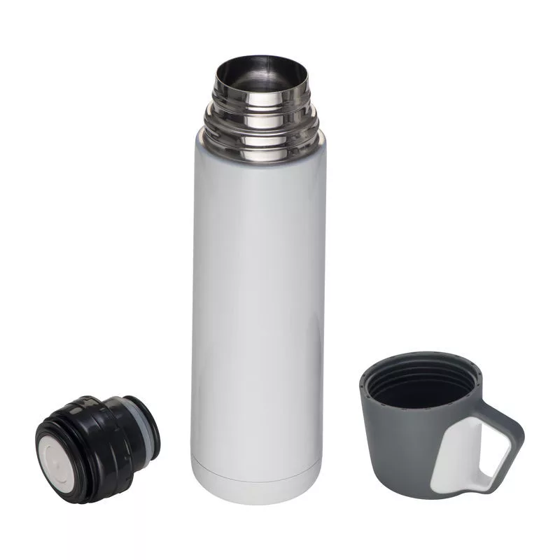 Duplafalú, rozsdamentes acél vákuumszigetelt termosz bögrével, 500 ml űrtartalommal, szivárgásmentes.
