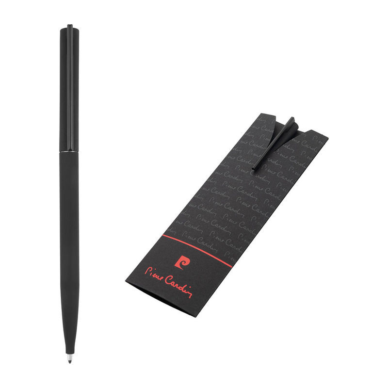 Elegáns Pierre Cardin golyóstoll fekete színben, amely első ránézésre rendkívül vékony megjelenésével lenyűgöz. A toll teste nagyon kellemes tapintású, gumírozott felülettel és fém klipsszel rendelkezik. 1 mm-es hegyű, minőségi német kék tollbetétet tartalmaz. Luxuszsebbe csomagolva, eredetiséget igazoló bizonyítvánnyal.