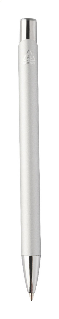 Újrahasznosított alumínium golyóstoll gumírozott testtel és színes, fényes, metálfényű részekkel. Speciális bevonattal a fém alkatrészekhez illő tükörgravírozáshoz. Kék tollbetéttel.