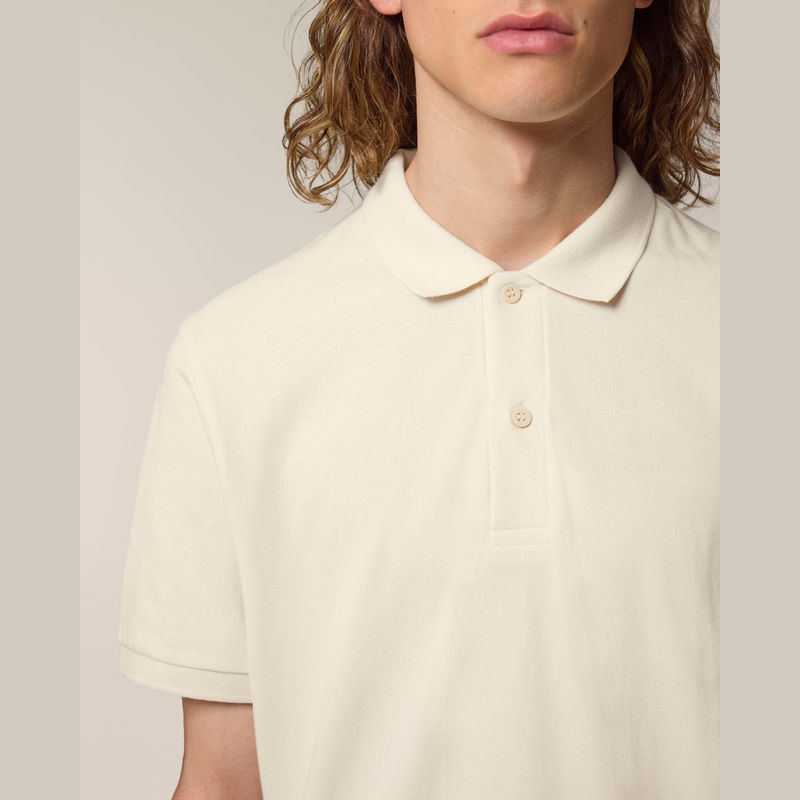 Prémium minőségű, 185 g/m² súlyú férfi póló, amely tökéletes választás melegebb időben. 100% organikus pamutból készült, újrahasznosított gombokkal. Stílusos és fenntartható, ideális egyedi eblémázáshoz. Különböző színekben elérhető.