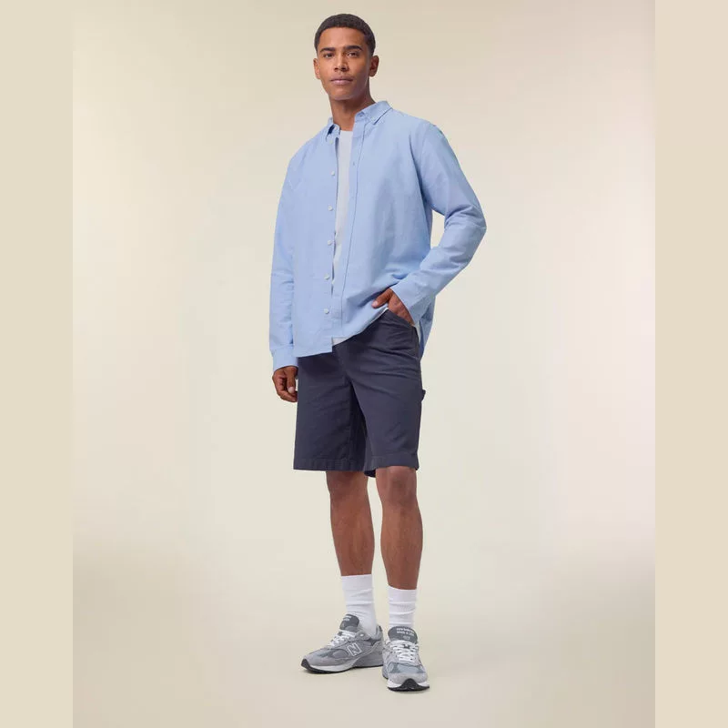 100% organikus pamut anyagú, 190 g/m² súlyú modern ing, elegáns megjelenést biztosít. Bármilyen alkalomra ideális választás, klasszikus dizájnja és környezetbarát anyaga révén kiemelkedő darab.