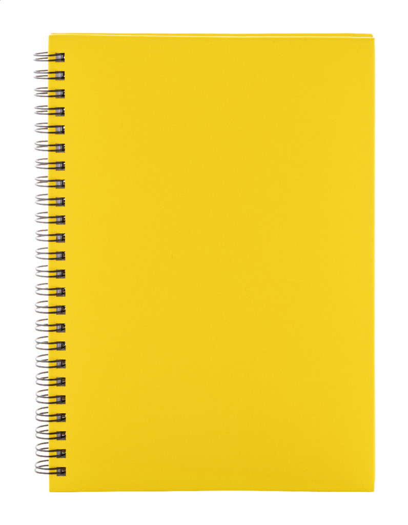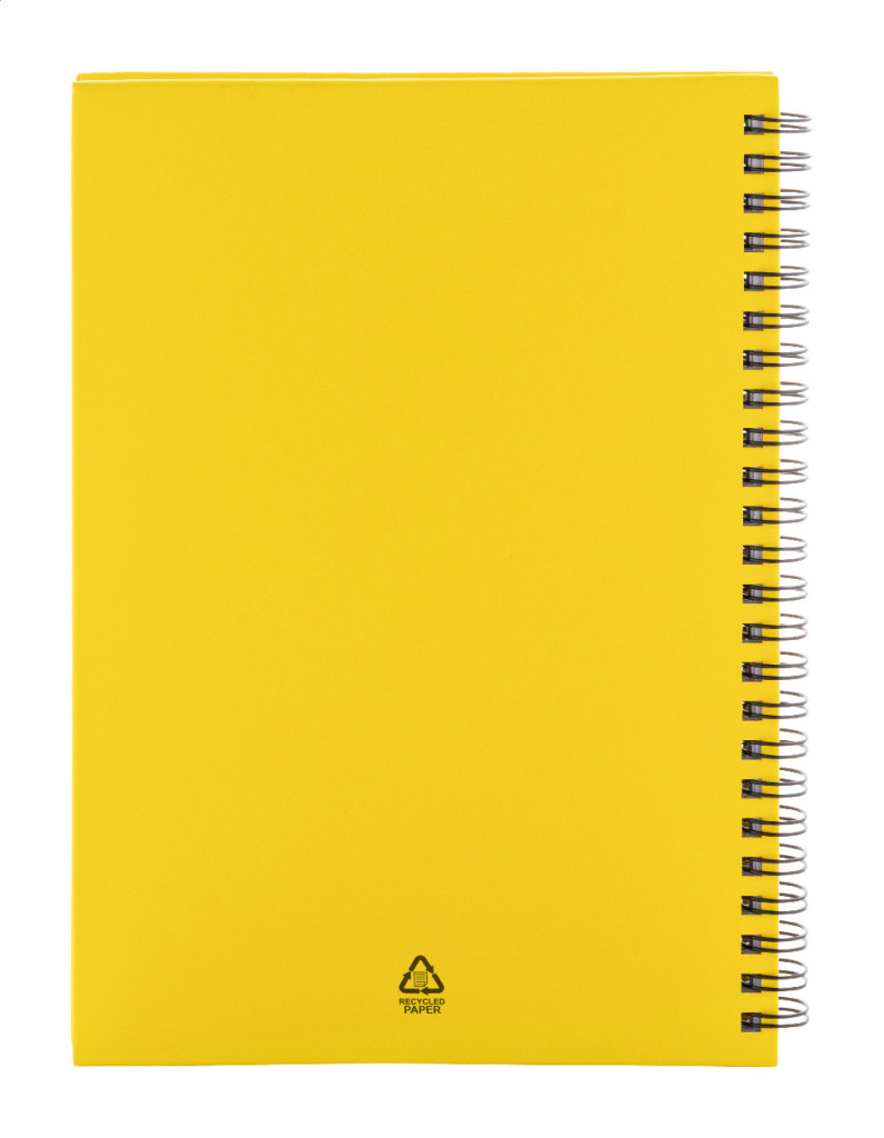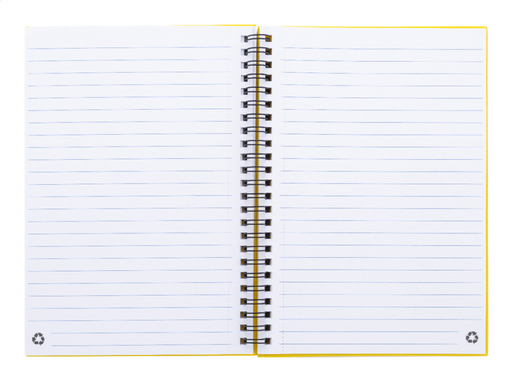 Újrahasznosított papír borítású spirál jegyzetfüzet 80 vonalas lappal, A5 méretű.