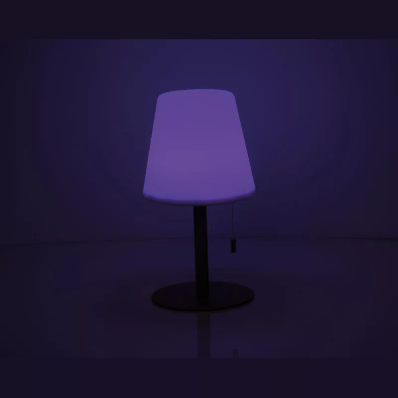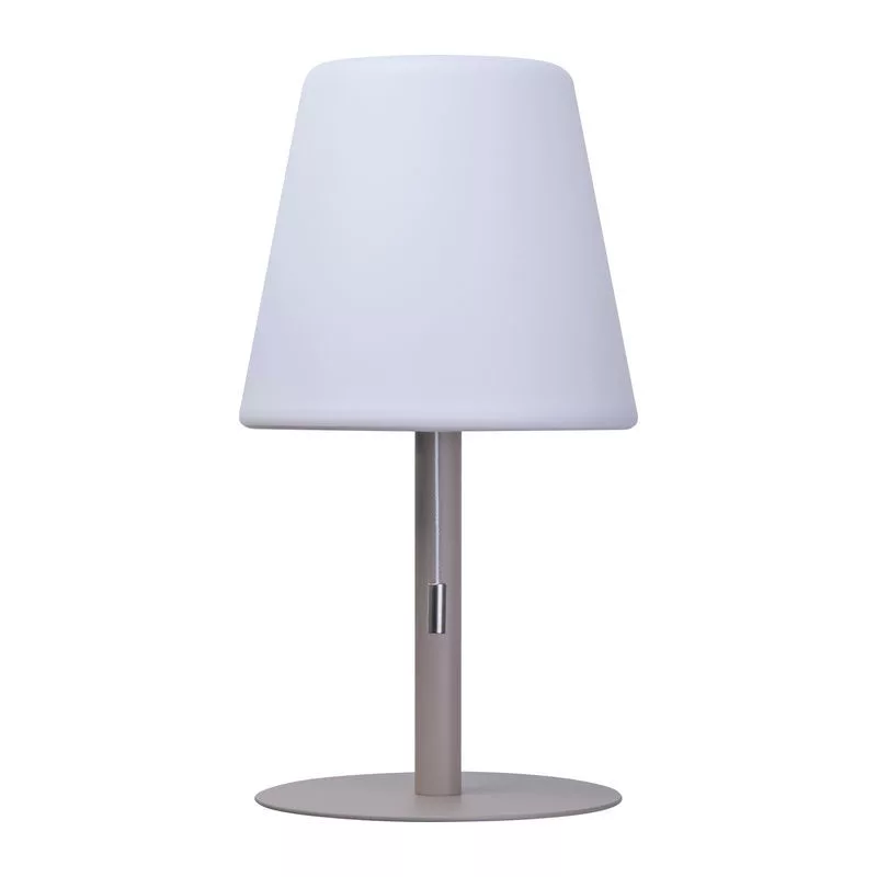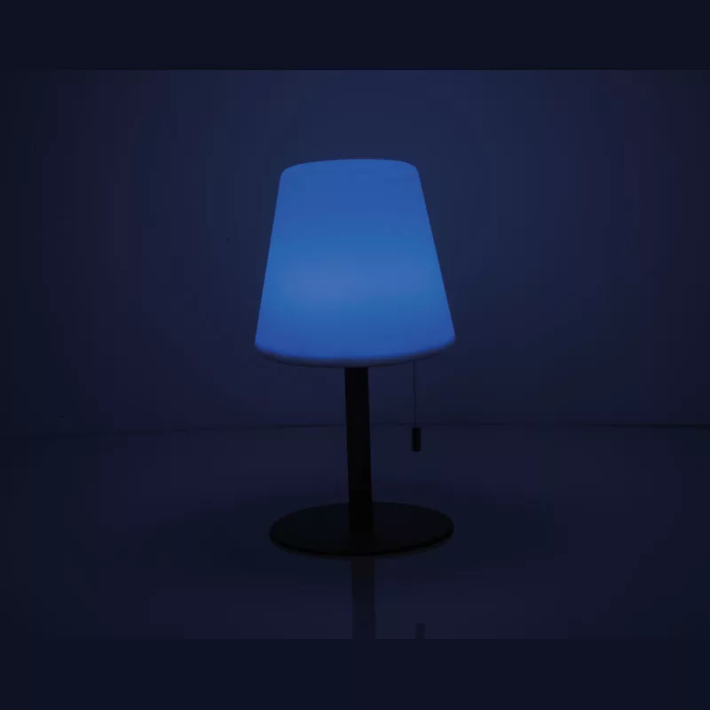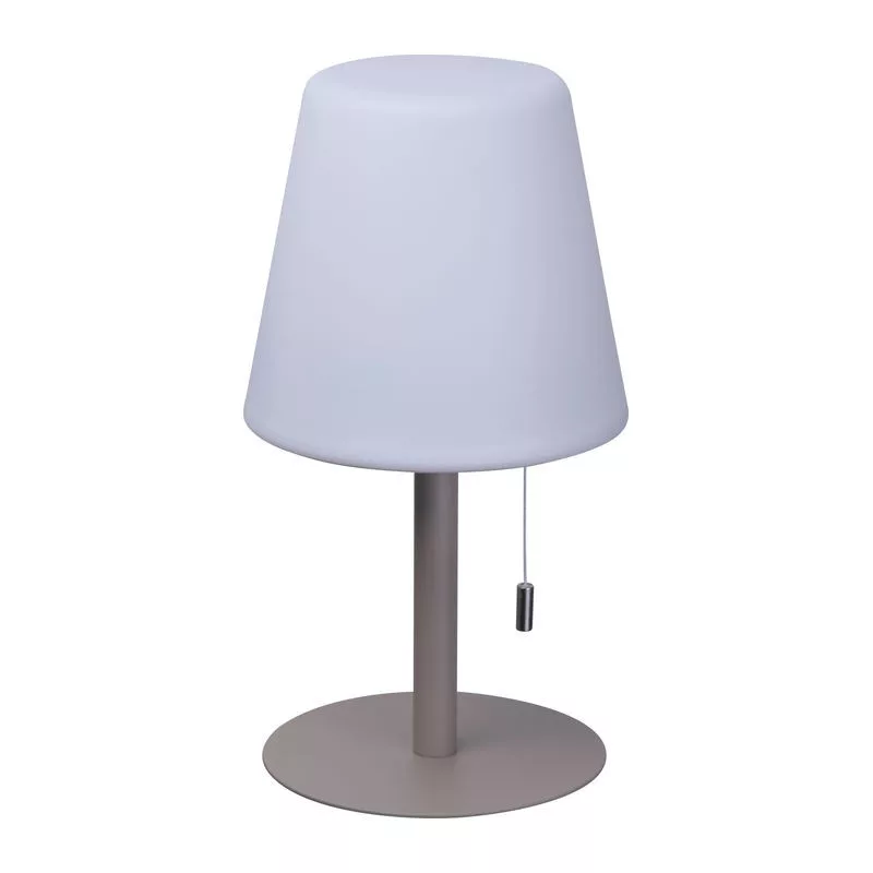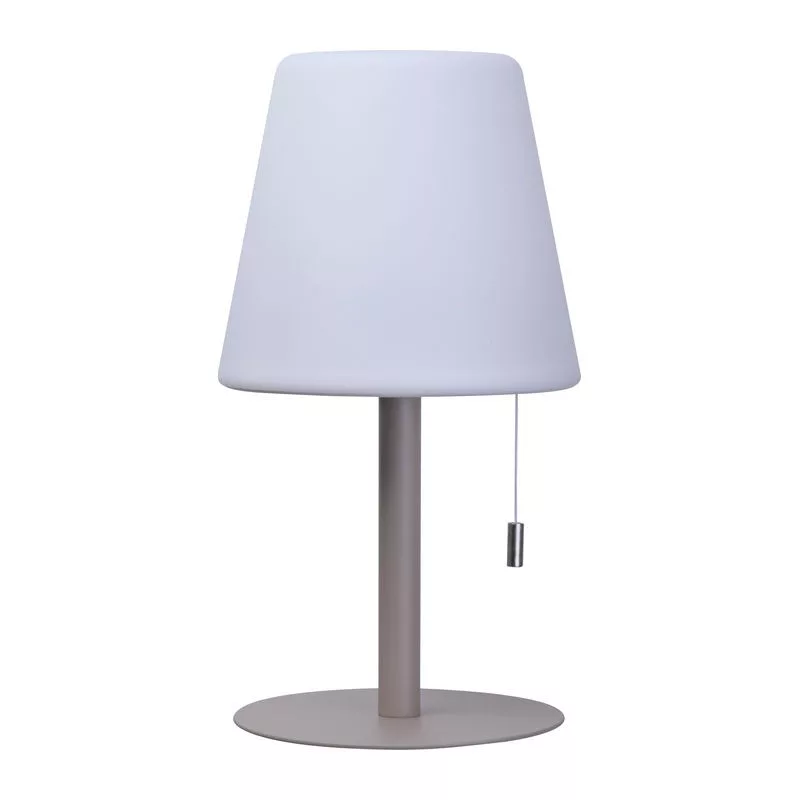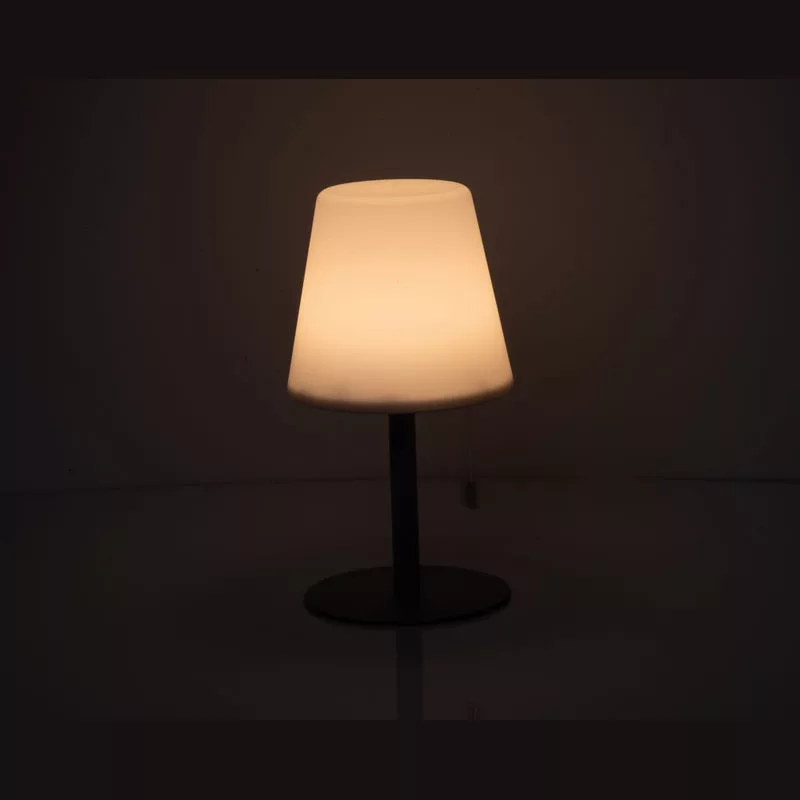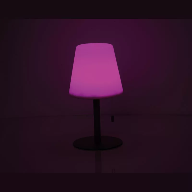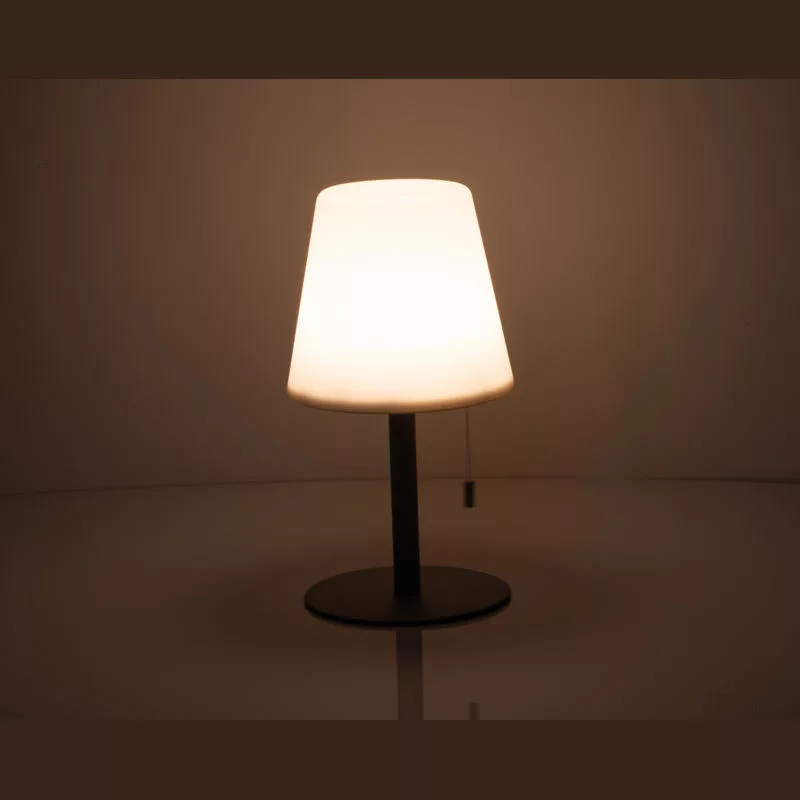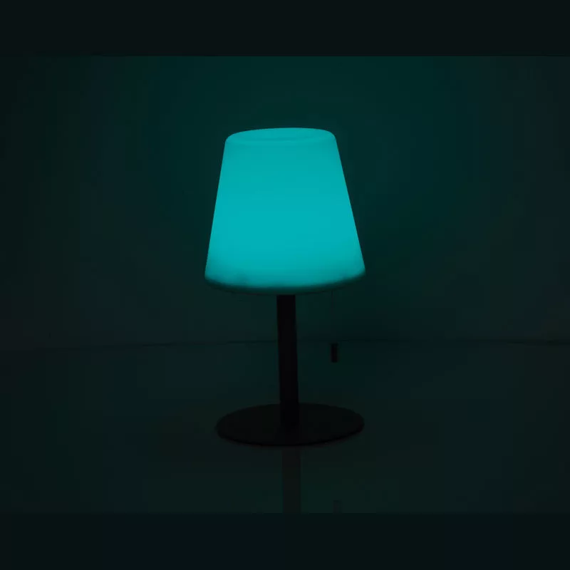 Közepes kültéri lámpa színváltással, modern design, 8–10 óra üzemidő, 3,7V, 2,400 mAh újratölthető akkumulátor, PP és fém anyagból. Ideális kertbe, teraszra vagy erkélyre, hangulatos kültéri fényekkel.