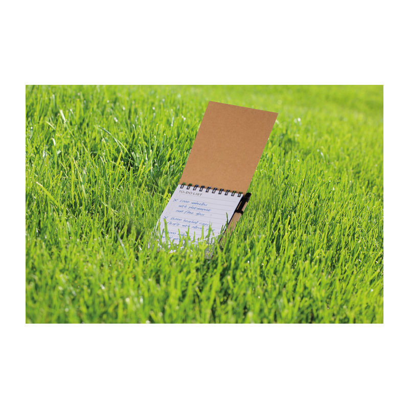 70 oldalas környezetbarát spirálos notesz, golyóstollal.