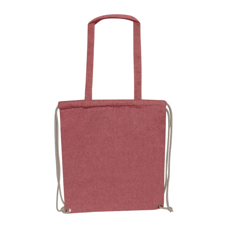 140 grammos OEKO-TEX STANDARD 100 minősítésű tornazsák újrahasznosított pamutból, vállra akasztható hosszú füllel és húzózsínórral.