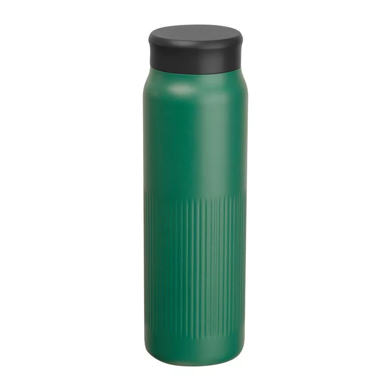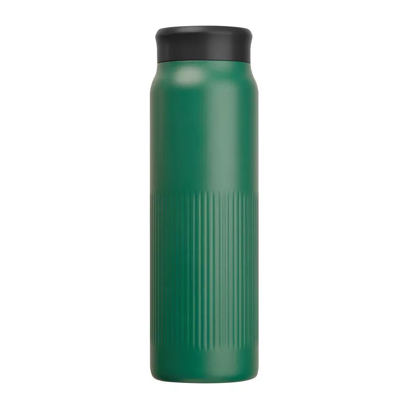 Dupla falú vákuumos újrahasznosított rozsdamentes acél palack, jellegzetes bordázott felülettel, 700 ml kapacitással.