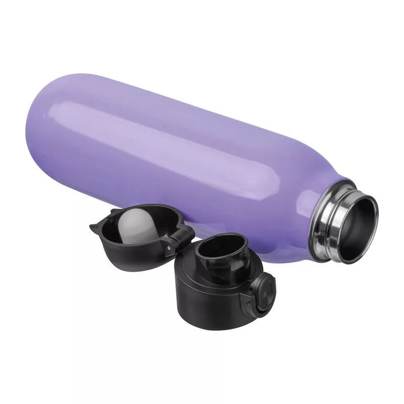 Dupla falú vákuumos rozsdamentes acél palack 500 ml kapacitással. A szivárgásmentes kupak egy kattintással nyílik.