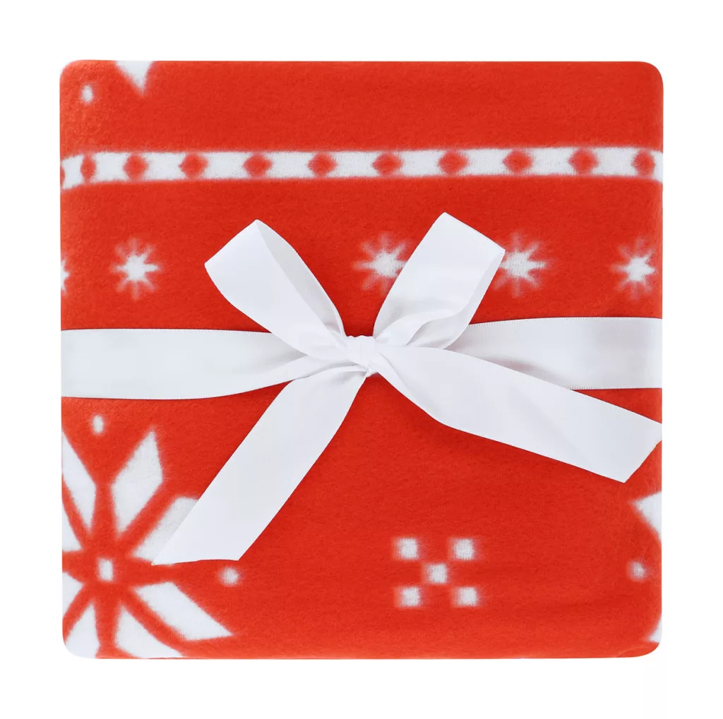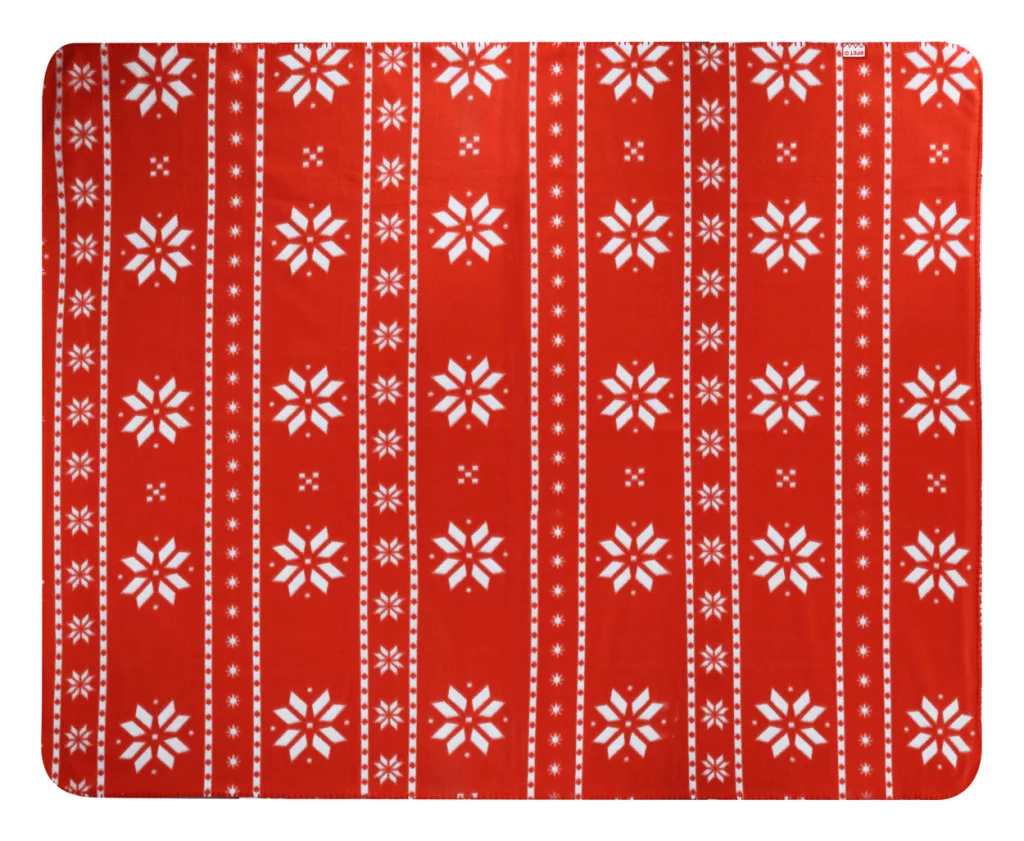 Bolyhosodásmentes RPET polár karácsonyi takaró, RPET poliészter 200 g/m2. Szalaggal átkötve, emblémázható papírkártyával szállítjuk.