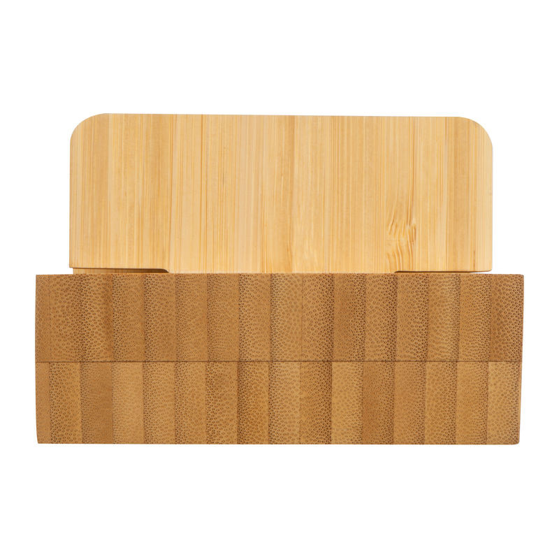 Bambuszból készült, vezeték nélküli töltőállomás,okostelefonhoz, vagy táblagéphez, 2 USB porttal és 1 USB-C porttal, USB-C töltőkábellel.