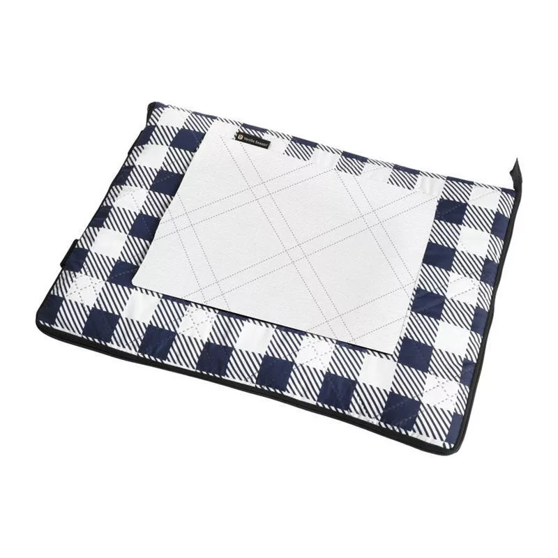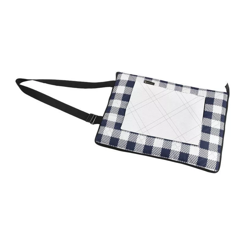 Praktikus Vanilla Season összehajtogatható pikniktakaró. Rendkívül tartós fonalból készült, üreges poliészter töltettel. A takaró alja vízálló 210D szövetből készült. A pléd kék-fehér kockás mintázatú, összehajtogatva pedig cipzárral záródik, és tartalmaz egy állítható hordozófogantyút, valamint egy fehér zsebet, amelynek mérete 24 x 32 cm.