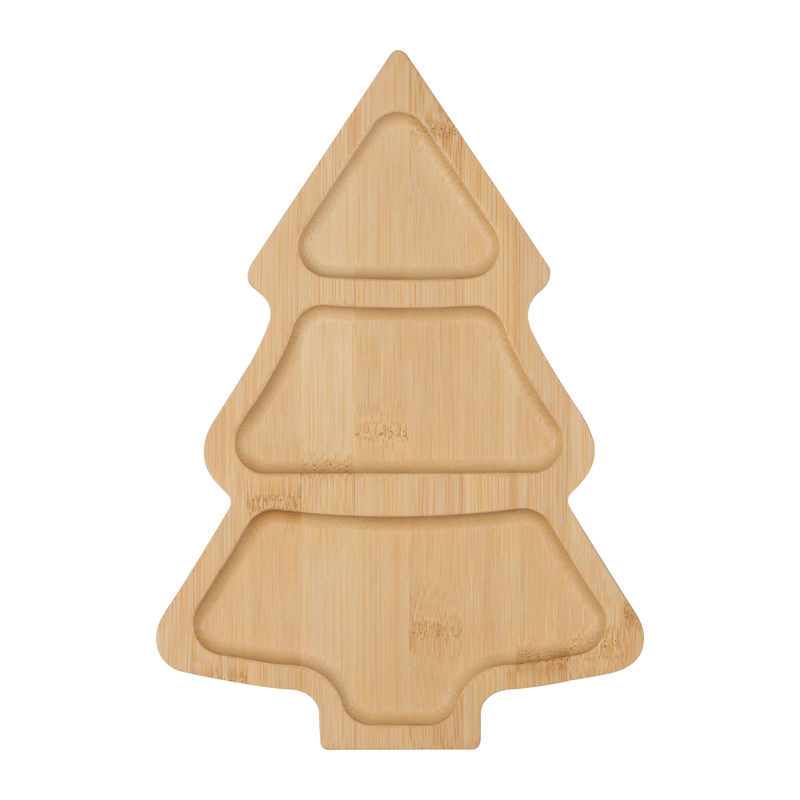 Karácsonyfa alakú, háromrekeszes bambusz nassoló tálca.