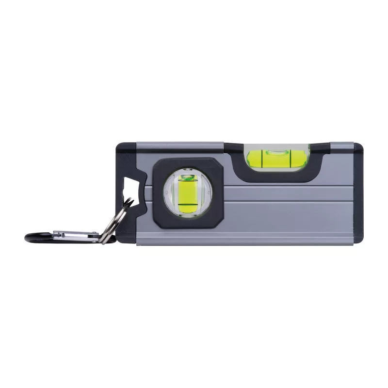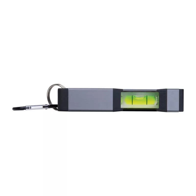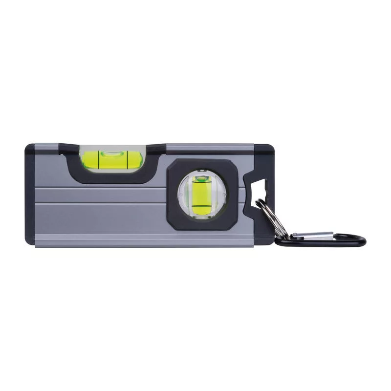 Alumíniumból készült mini vízmérték ABS műanyag kiegészítőkkel, két vízmértékkel, az alján mágnessel és karabinerrel.
