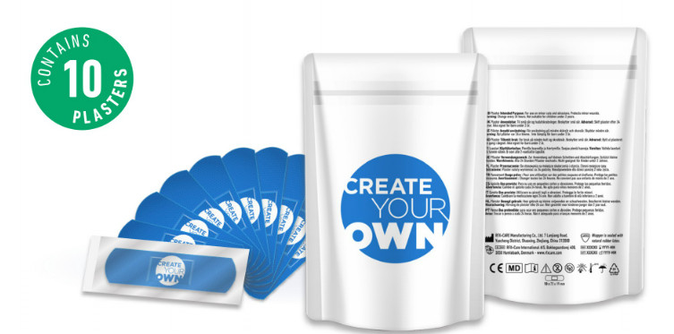250 darabtól rendelhető, teljesen egyedi grafikával. Egy csomag tíz darab sebtapaszt tartalmaz.