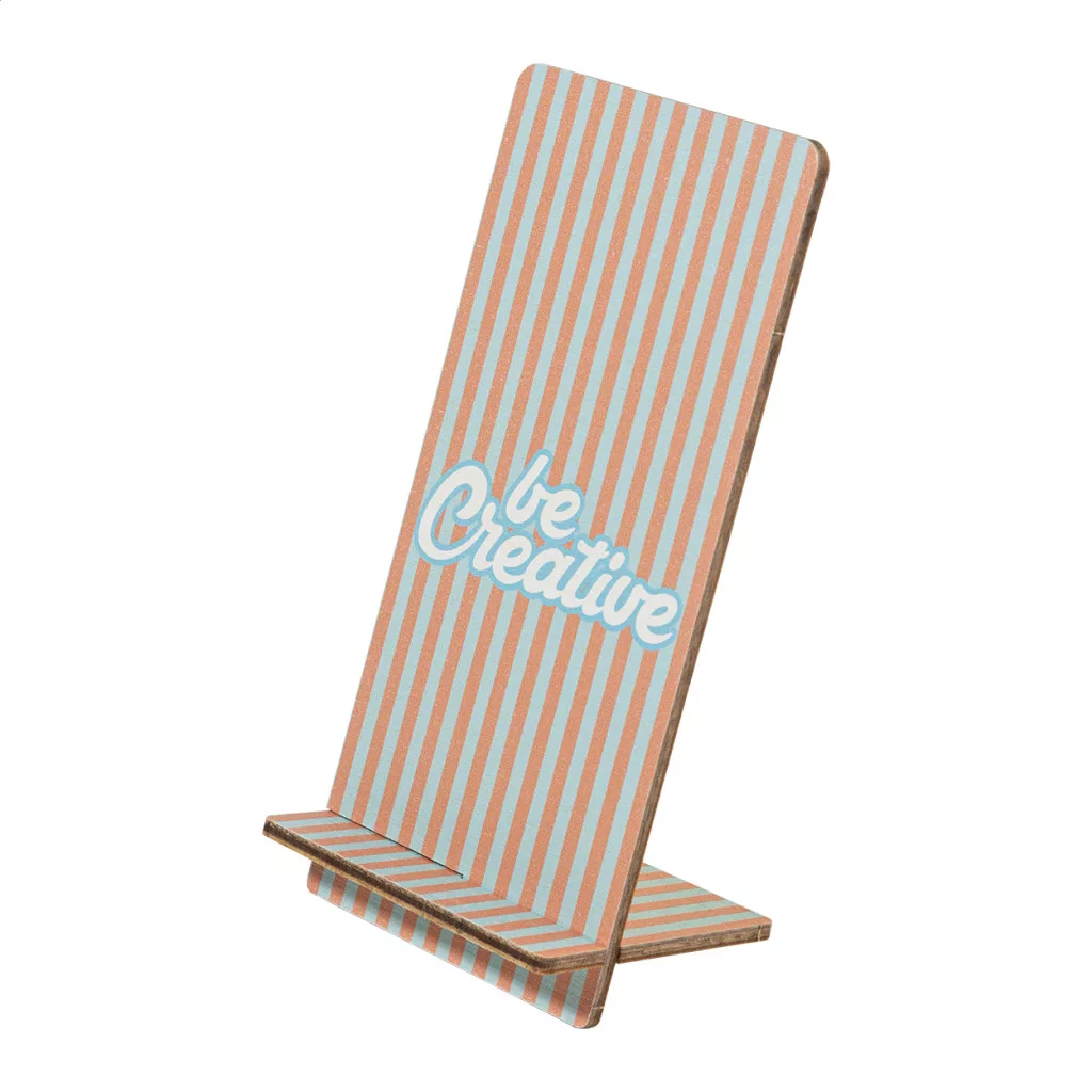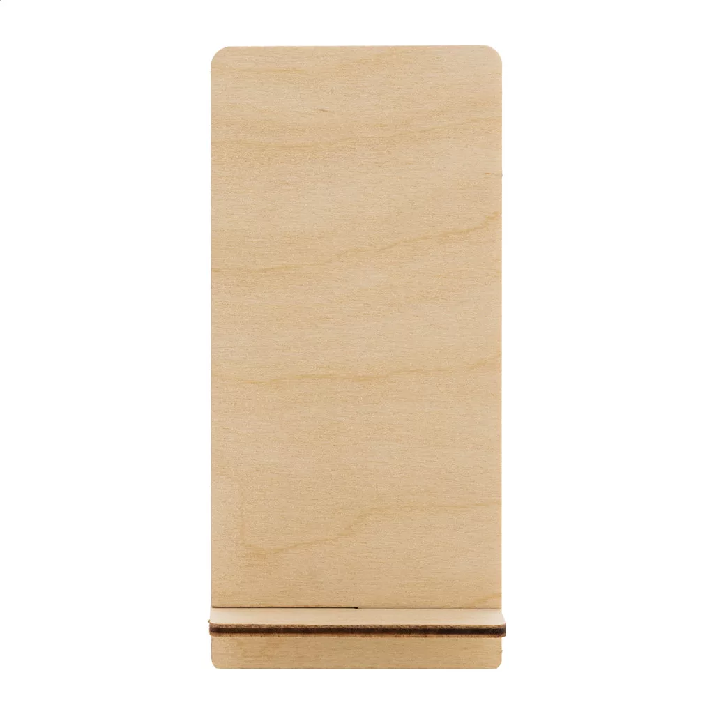 Egyedi gyártású, full colour nyomtatású asztali mobiltelefon-tartó rétegelt nyírfa lemezből. Az ár tartalmazza az UV LED nyomtatást az elülső oldalon. Lapra szerelve szállítjuk. Minimális rendelési mennyiség: 50 db.