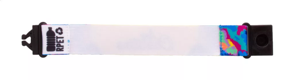 Egyediesíthető, RPET poliészter karkötő műanyag csattal. Az ár tartalmazza a szublimációs emblémázást a termék egyik oldalán. Minimális rendelési mennyiség: 100 db.