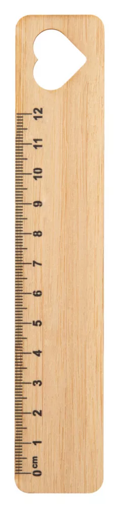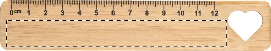 12 cm hosszú vonalzó bambusz furnérból, kivágott motívummal díszítve.