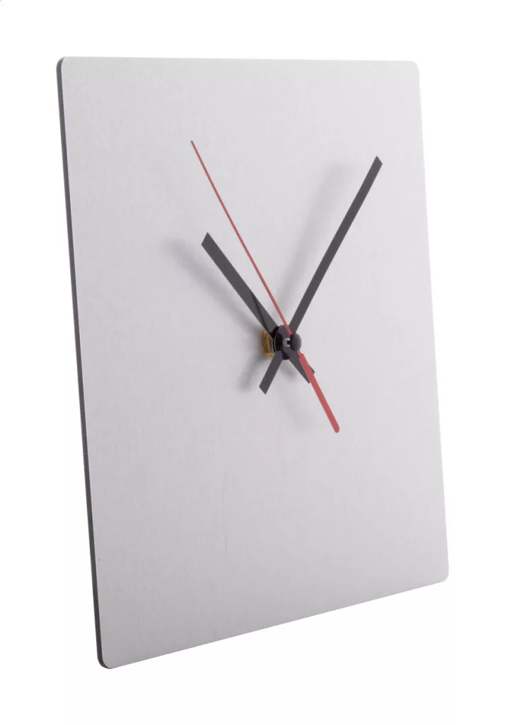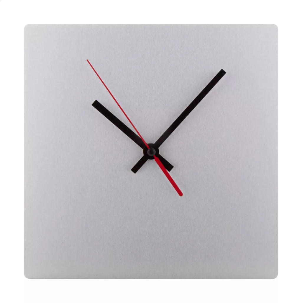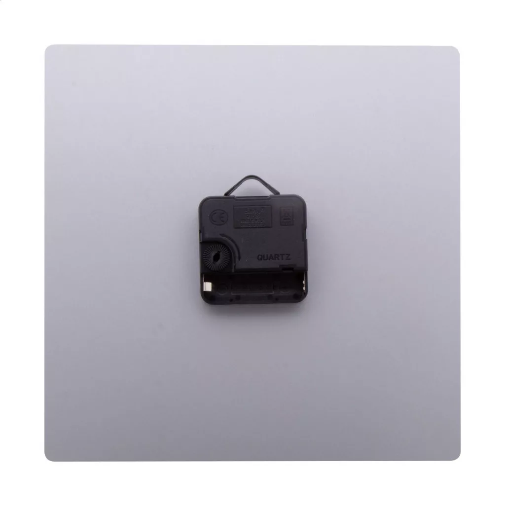 Négyzet alakú, szálcsiszolt alumínium szendvicslemezből készült falióra egyedi grafikával. 1 db AA elemmel működik, elem nélkül szállítjuk. Az ár tartalmazza az UV LED emblémázás költségét. Minimum rendelési mennyiség: 25 db.