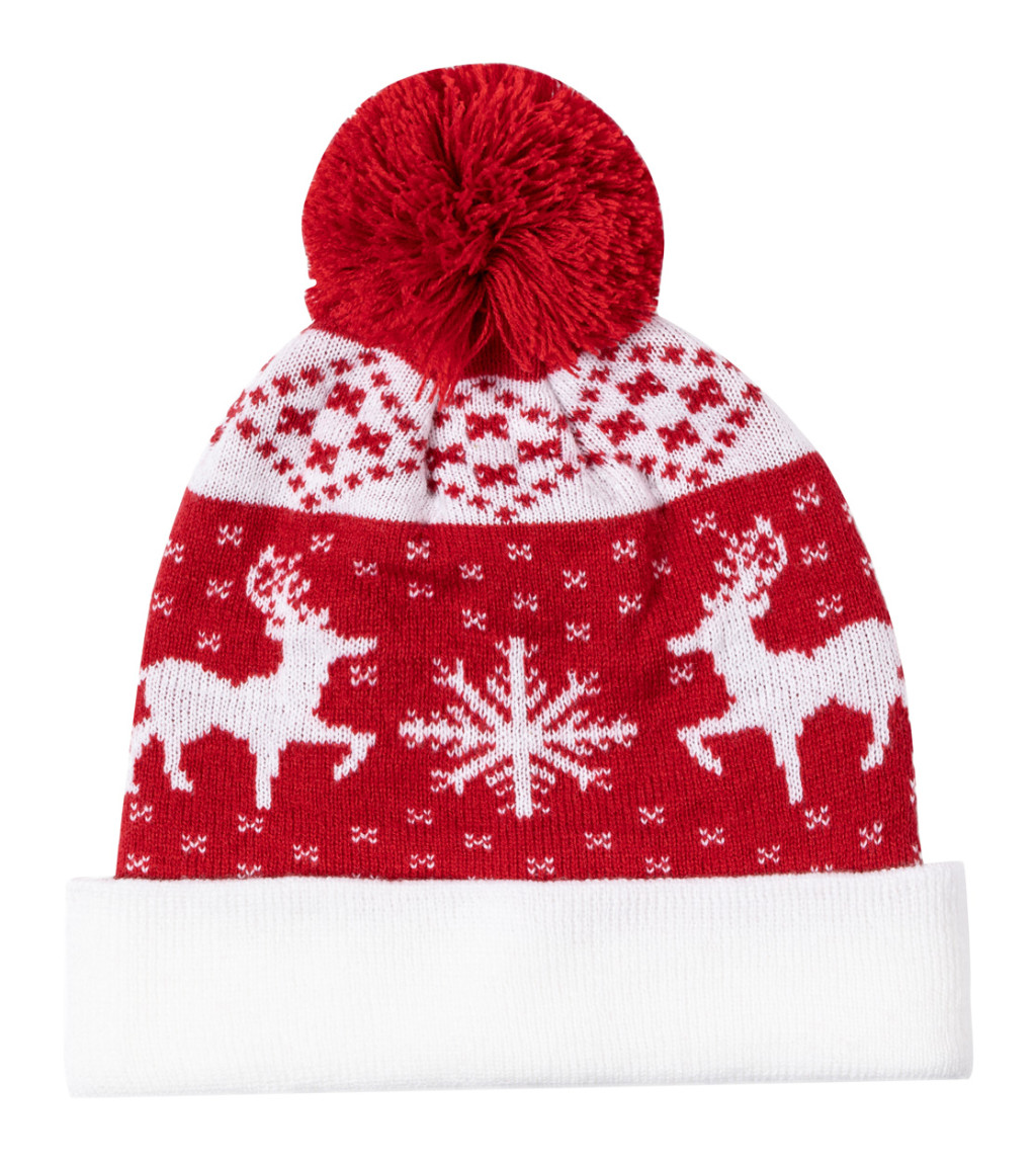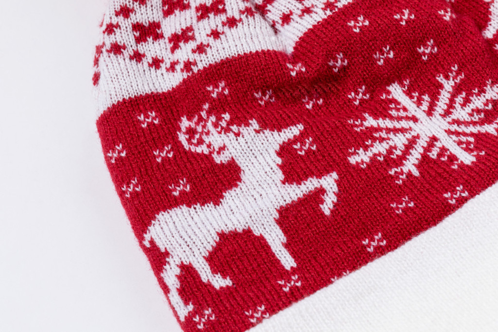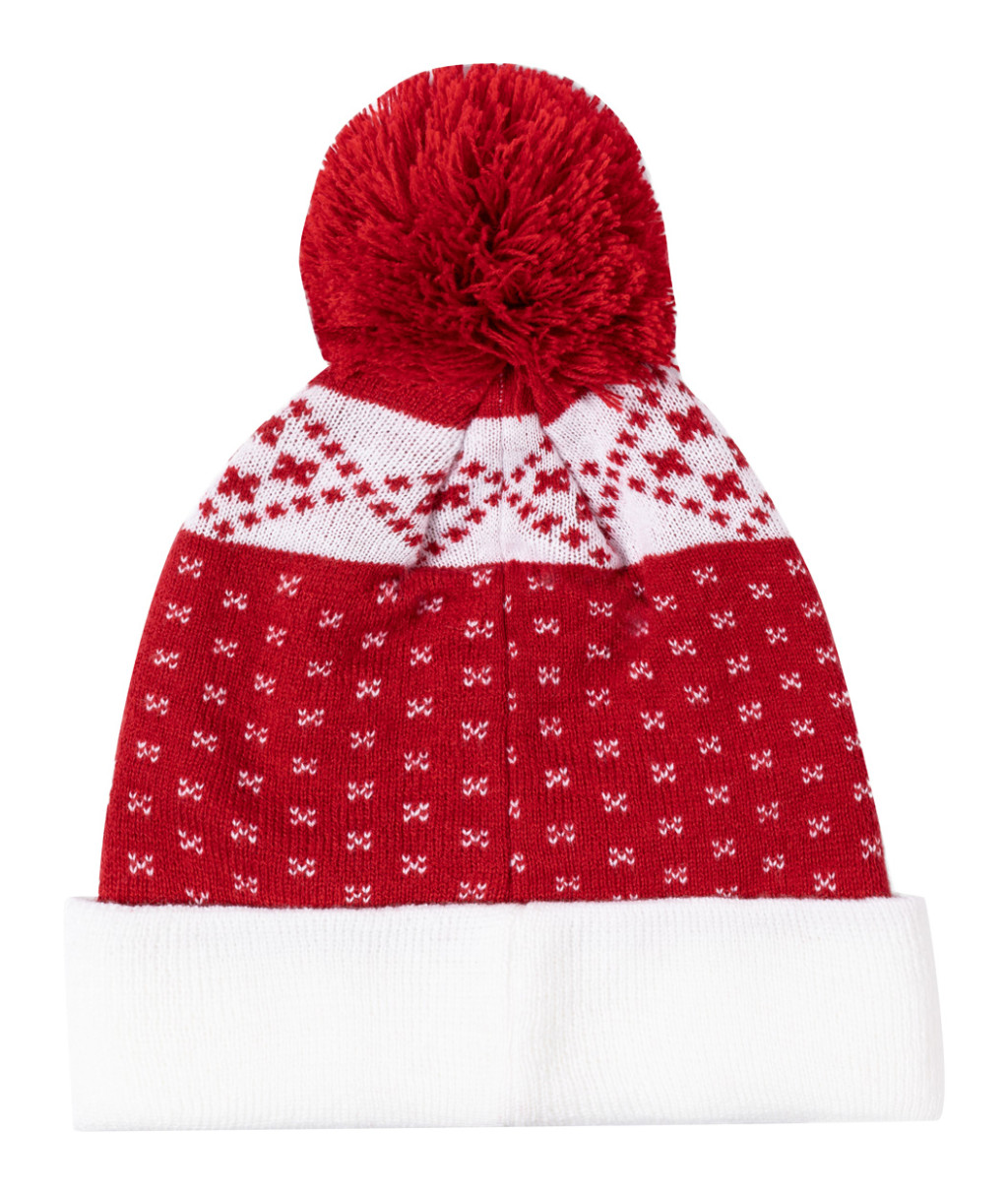 Akril téli sapka karácsonyi mintával és pomponnal.