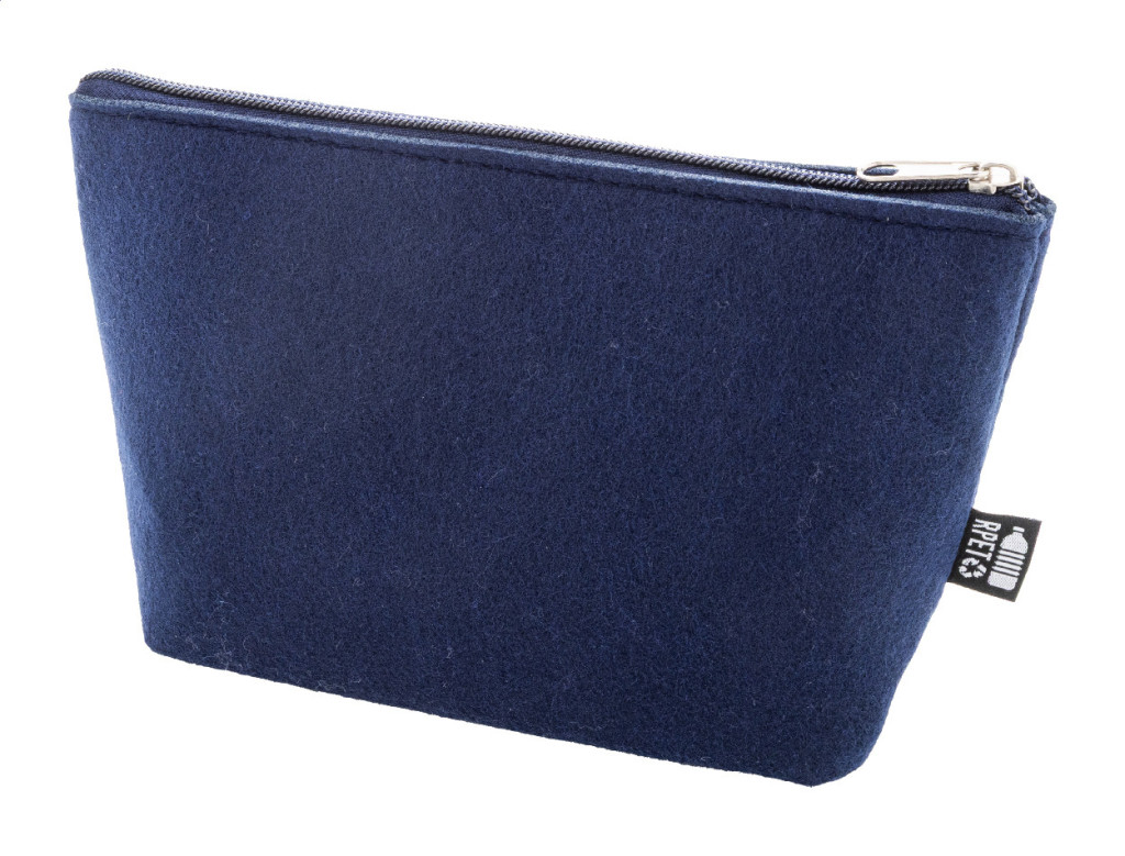 Cipzáras RPET filc kozmetikai táska. Megkülönböztető RPET címkével.