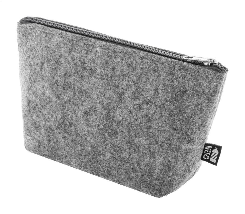 Cipzáras RPET filc kozmetikai táska. Megkülönböztető RPET címkével.