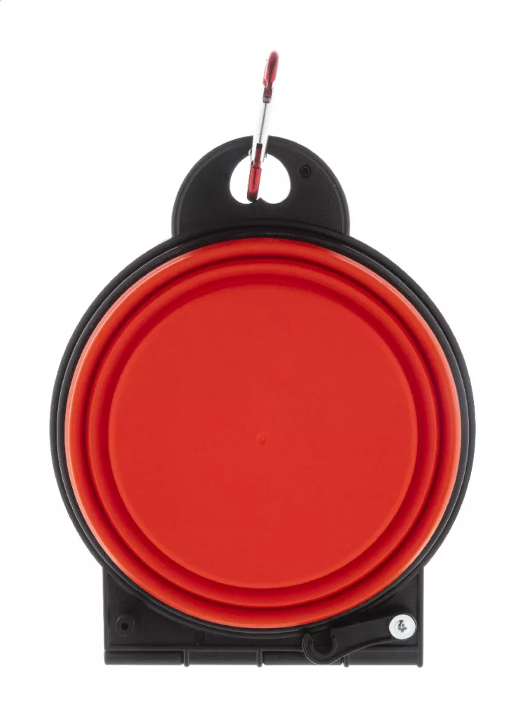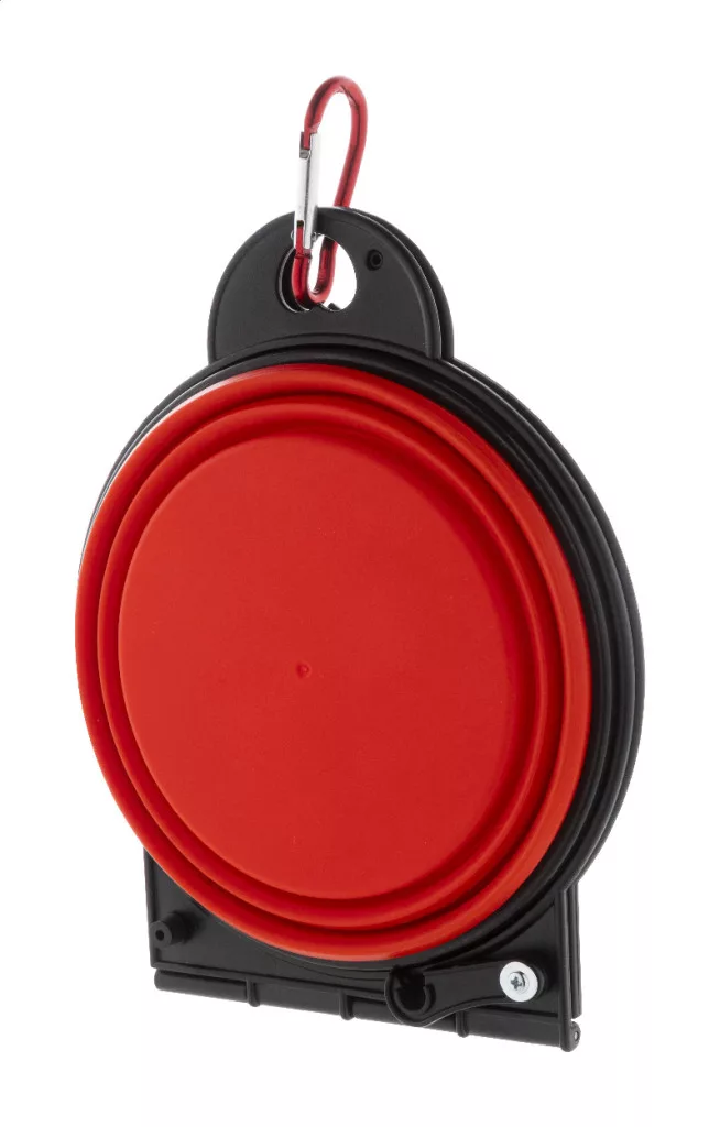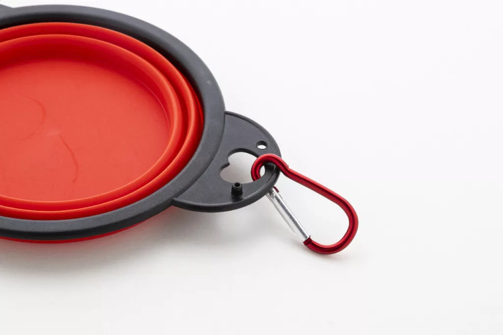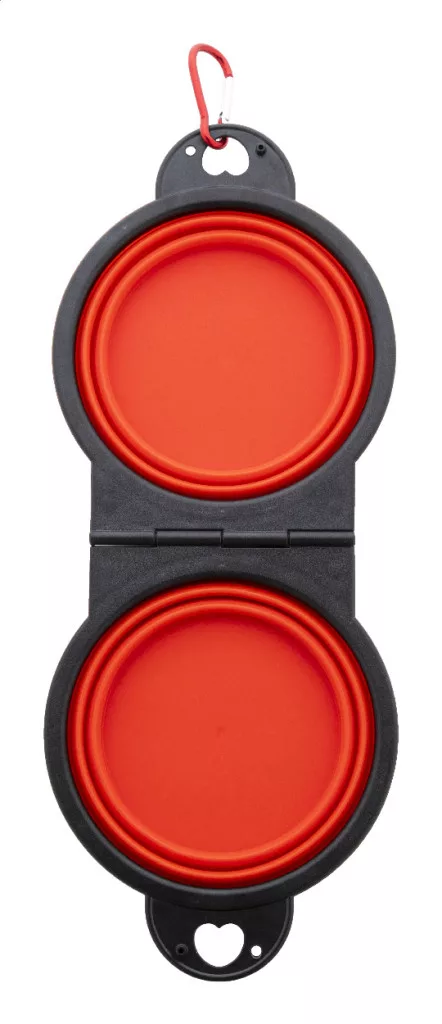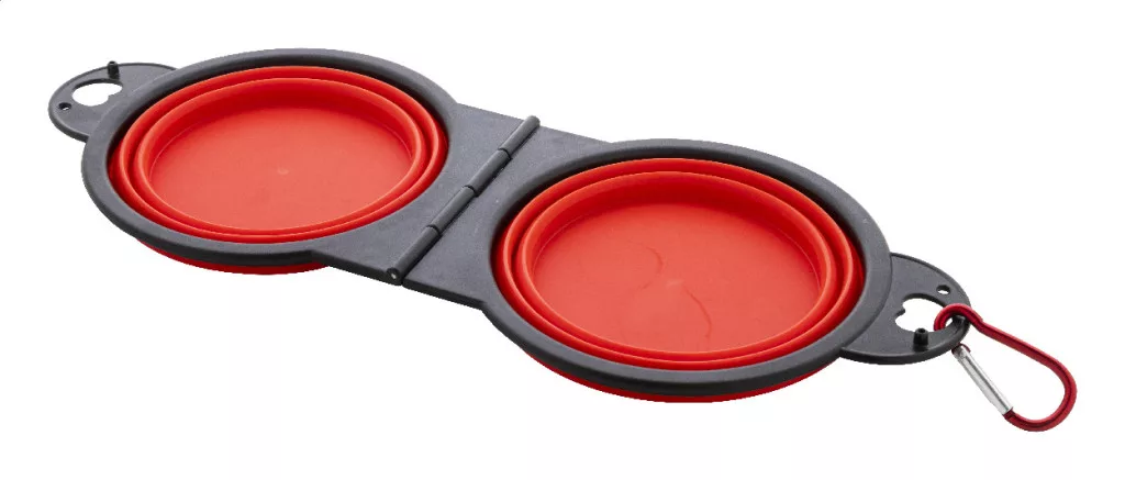 Összecsukható kutyatál TPE-ből, két 450 ml-es rekesszel és hozzá illő színű alumínium karabinerrel.