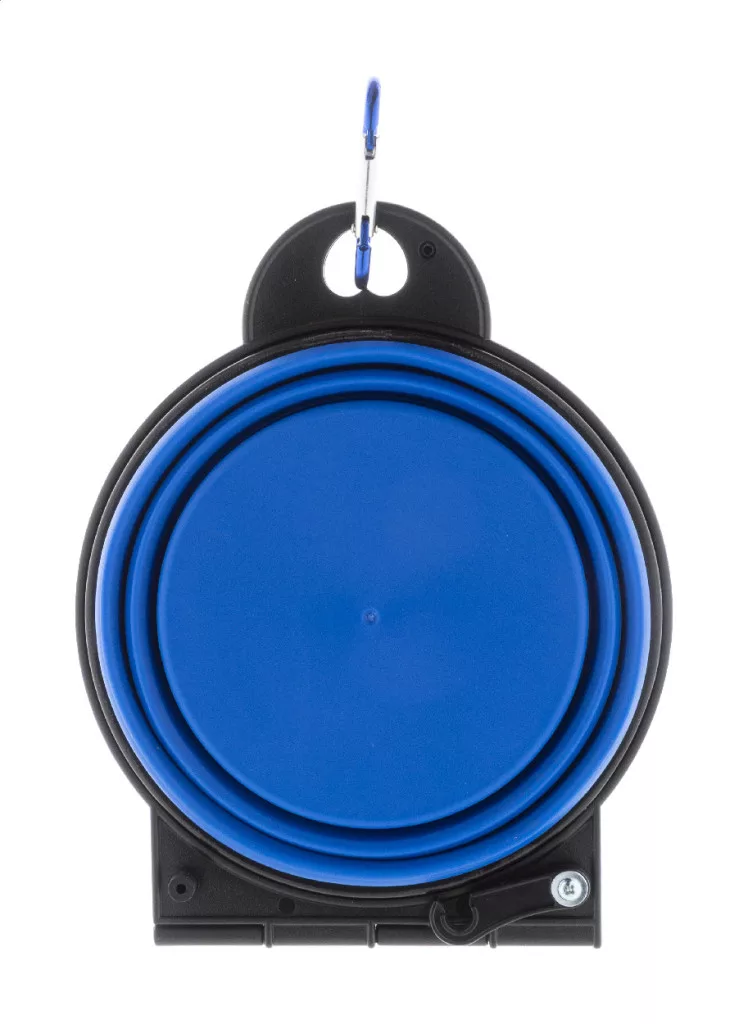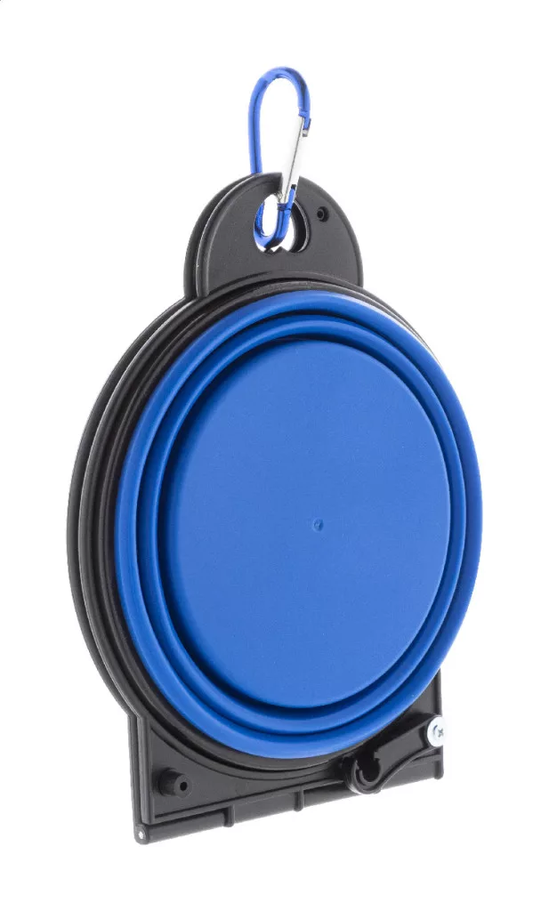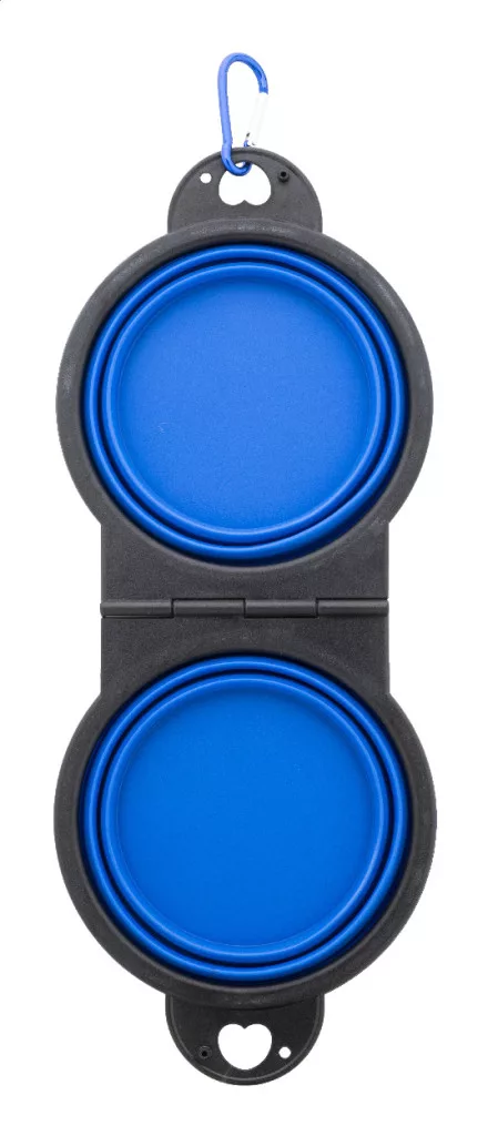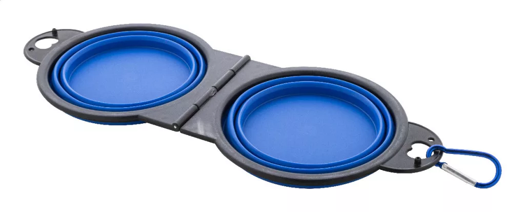 Összecsukható kutyatál TPE-ből, két 450 ml-es rekesszel és hozzá illő színű alumínium karabinerrel.