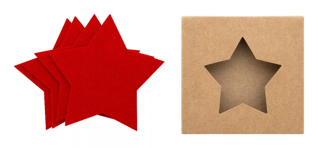 4 darabos, csillag alakú, RPET filc karácsonyi poháralátét szett. Kraft papír dobozban.