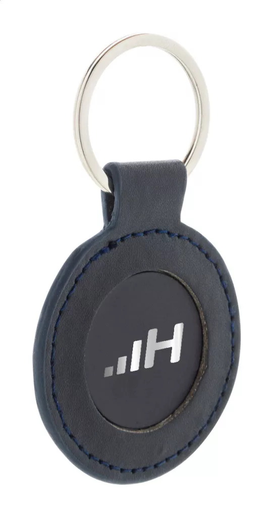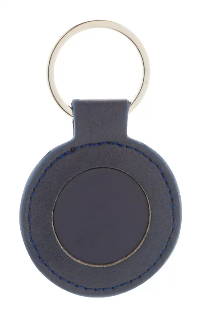 Kör alakú, újrahasznosított PU bőr kulcstartó fém karikával és gumírozott rozsdamentes acél logóval. Speciális bevonattal a tükörlézeres gravírozáshoz.