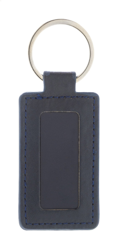 Téglalap alakú, újrahasznosított PU bőr kulcstartó fém karikával és gumírozott rozsdamentes acél logóval. Speciális bevonattal a tükörlézeres gravírozáshoz.