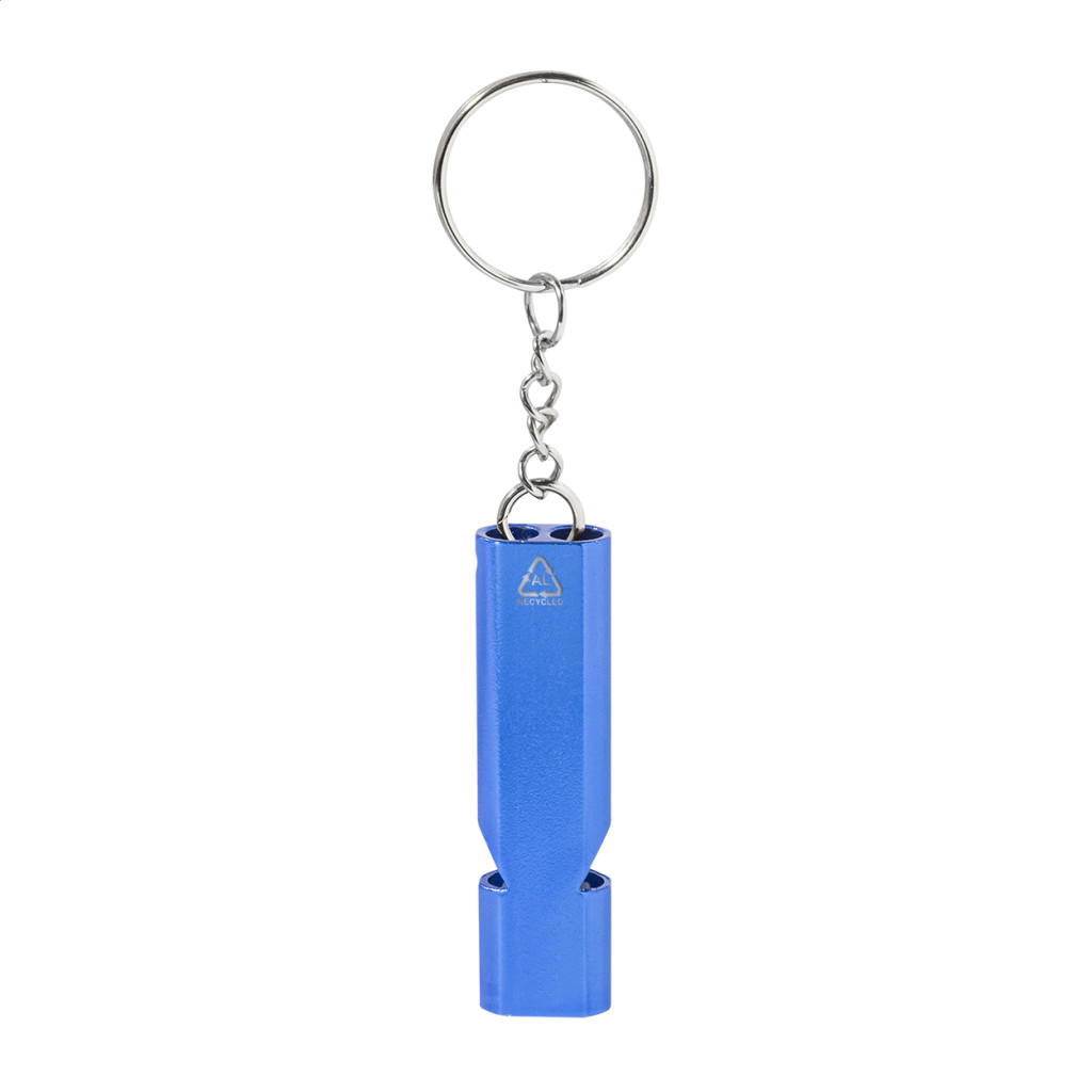 Újrahasznosított alumínium síp fém kulcstartóval.