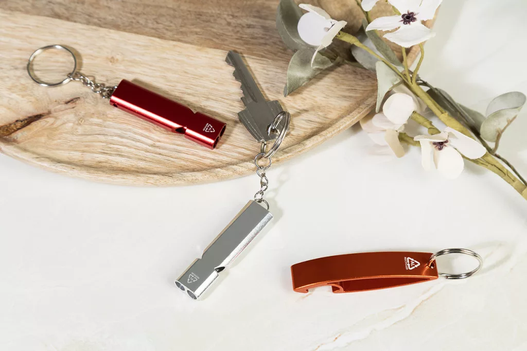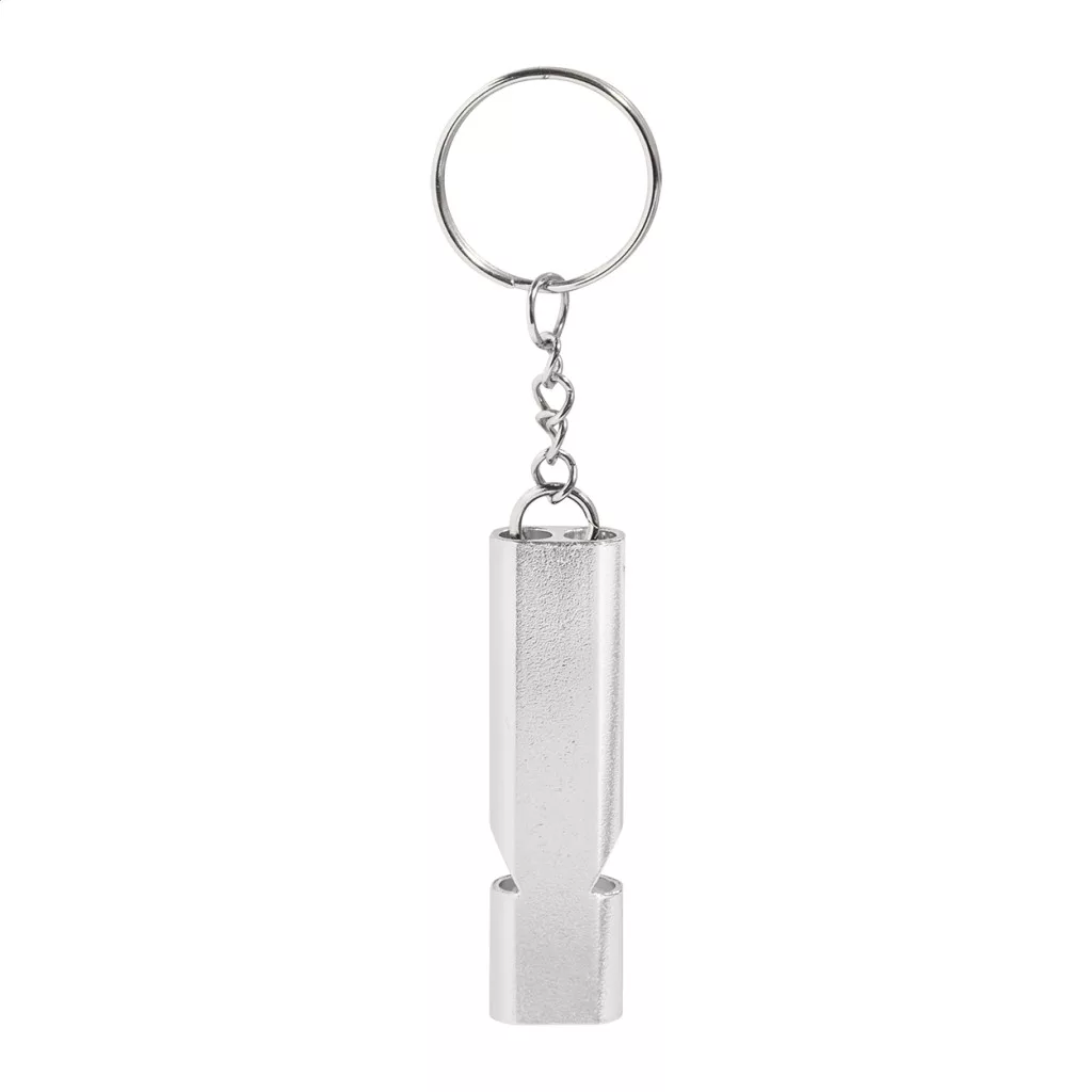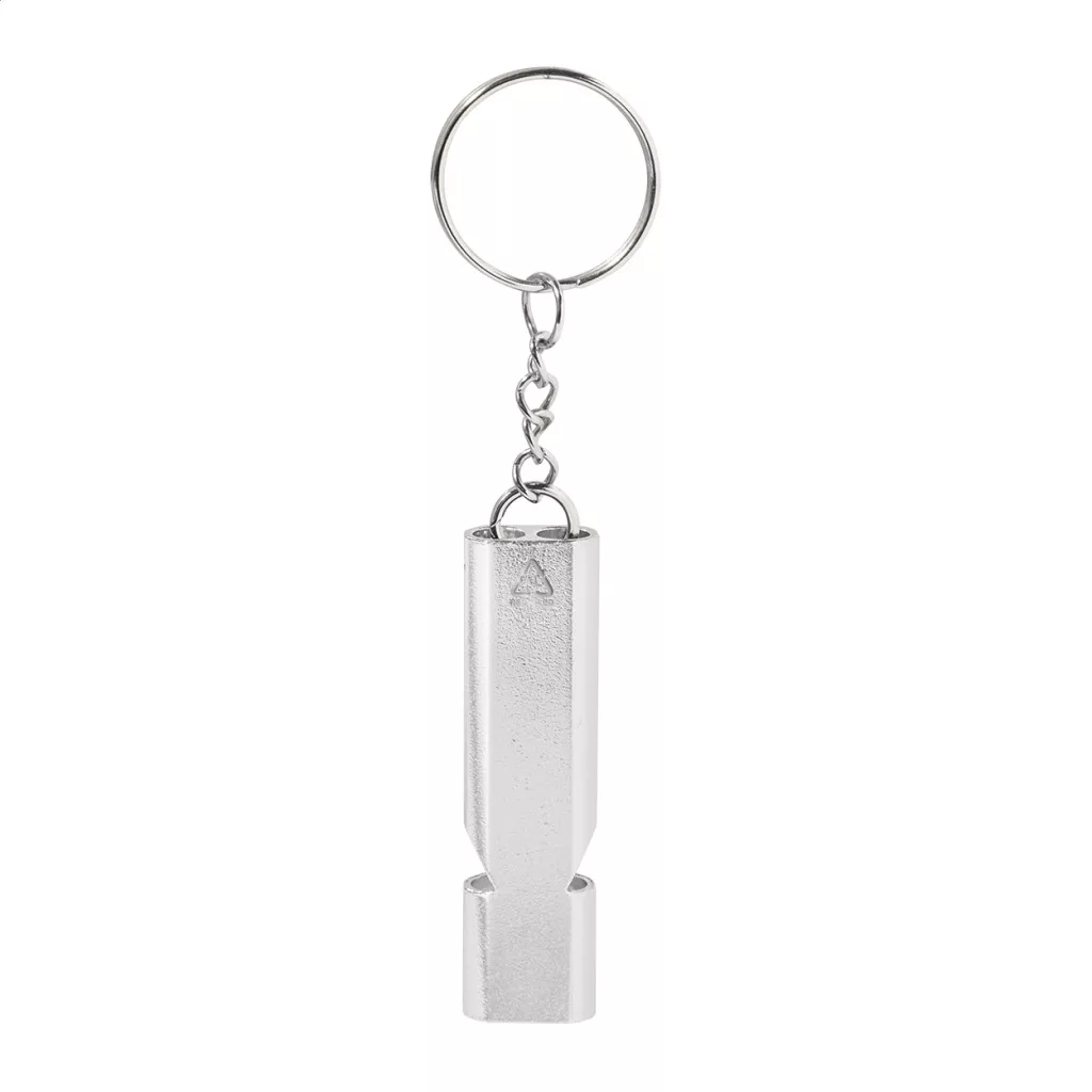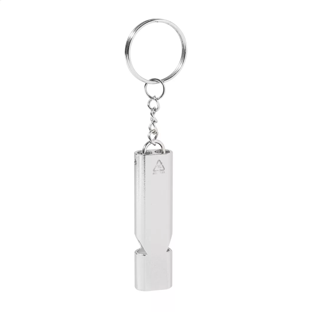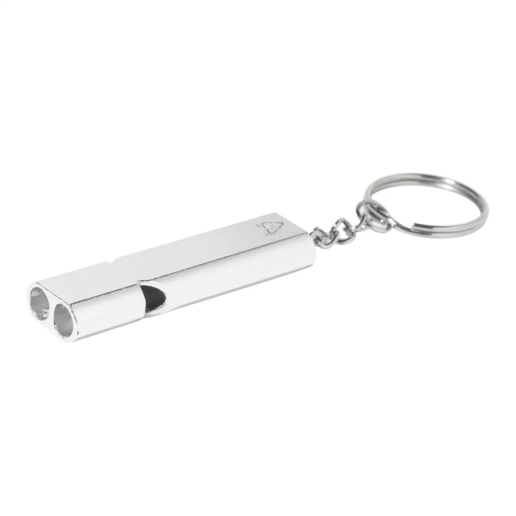 Újrahasznosított alumínium síp fém kulcstartóval.