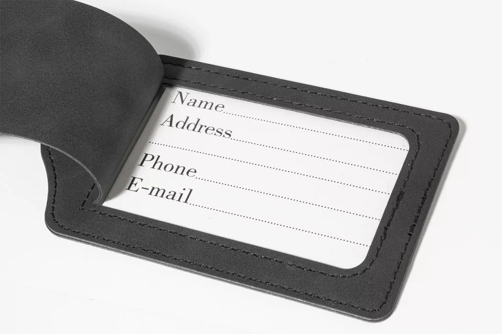 Újrahasznosított PU műbőr útlevéltartó és bőröndcímke szett. Kraft papír dobozban.
