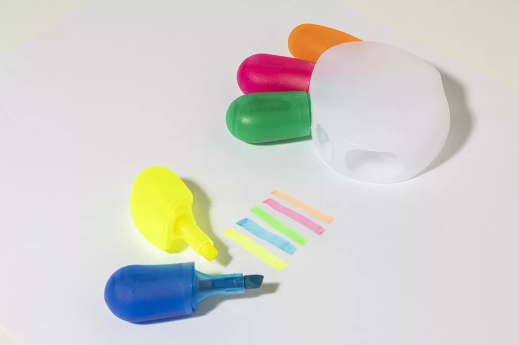 Kéz alakú szövegkiemelő 5 színnel, újrahasznosított ABS műanyagból.