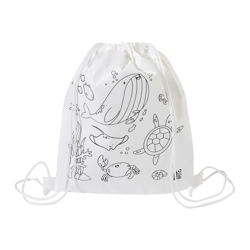 RPET non-woven anyagú, színezhető hátizsák gyerekeknek 5 zsírkrétával.