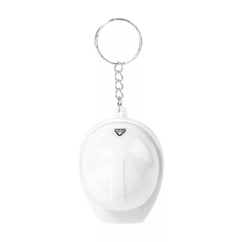 Újrahasznosított ABS műanyagból készült, sisak alakú kulcstartó üvegnyitóval.