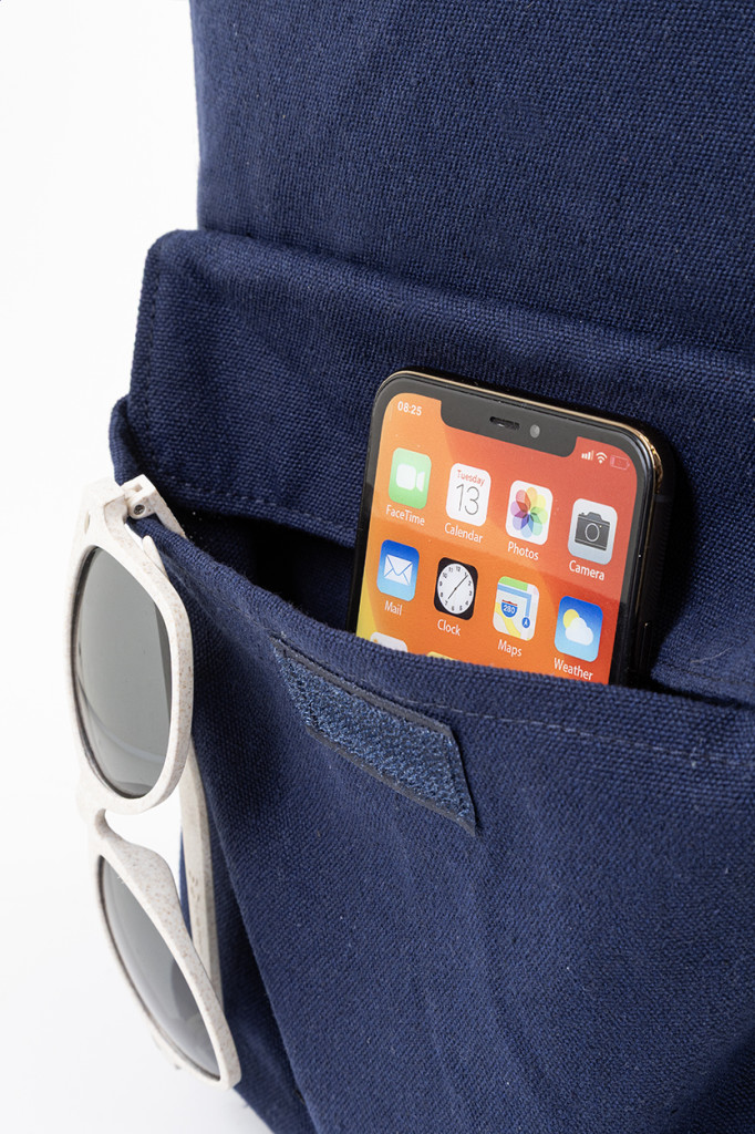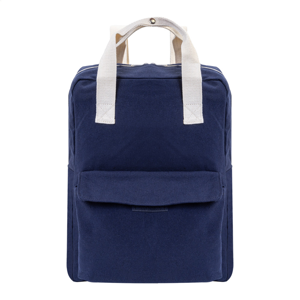 Újrahasznosított vászon hátizsák cipzáras fő rekesszel, párnázott laptop rekesszel (13") és tépőzáras elülső zsebbel. 70% újrahasznosított pamut és 30% RPET poliészter. Megkülönböztető újrahasznosított pamut címkével.