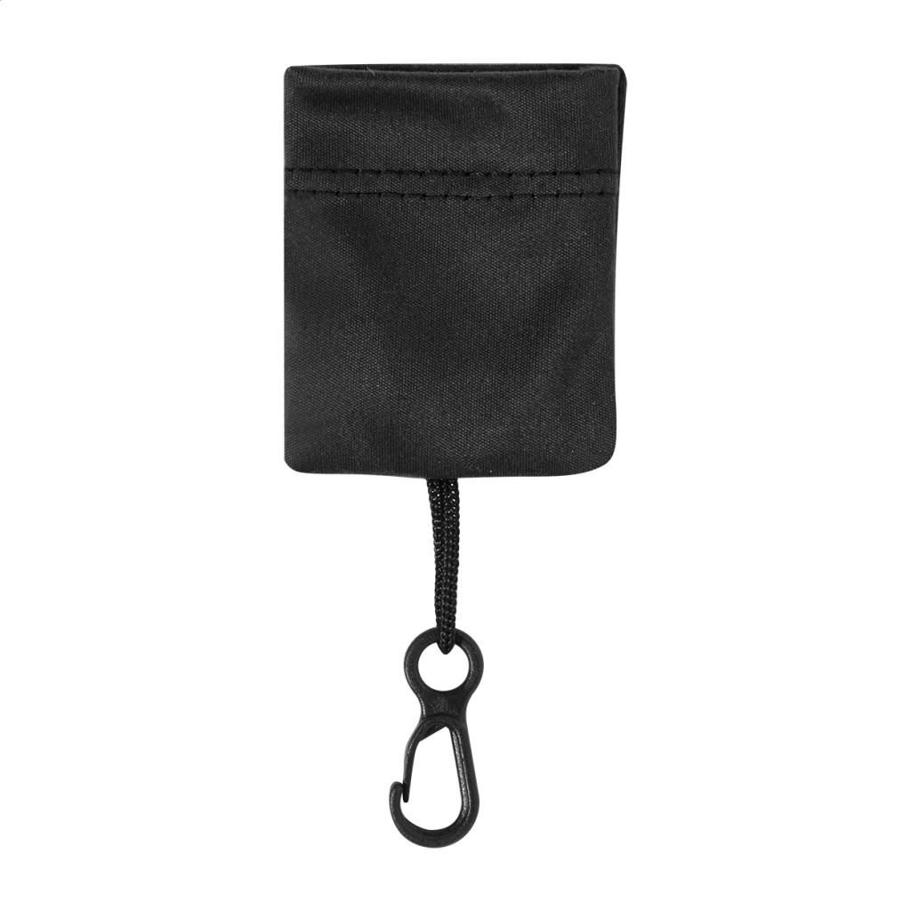 100% RPET mikroszálas (220 g/m²) tisztítókendő szemüvegekhez és képernyőkhöz. Anyagához illő hordtasakban, PP karabinerrel. Kendő mérete: 15 × 15 cm.