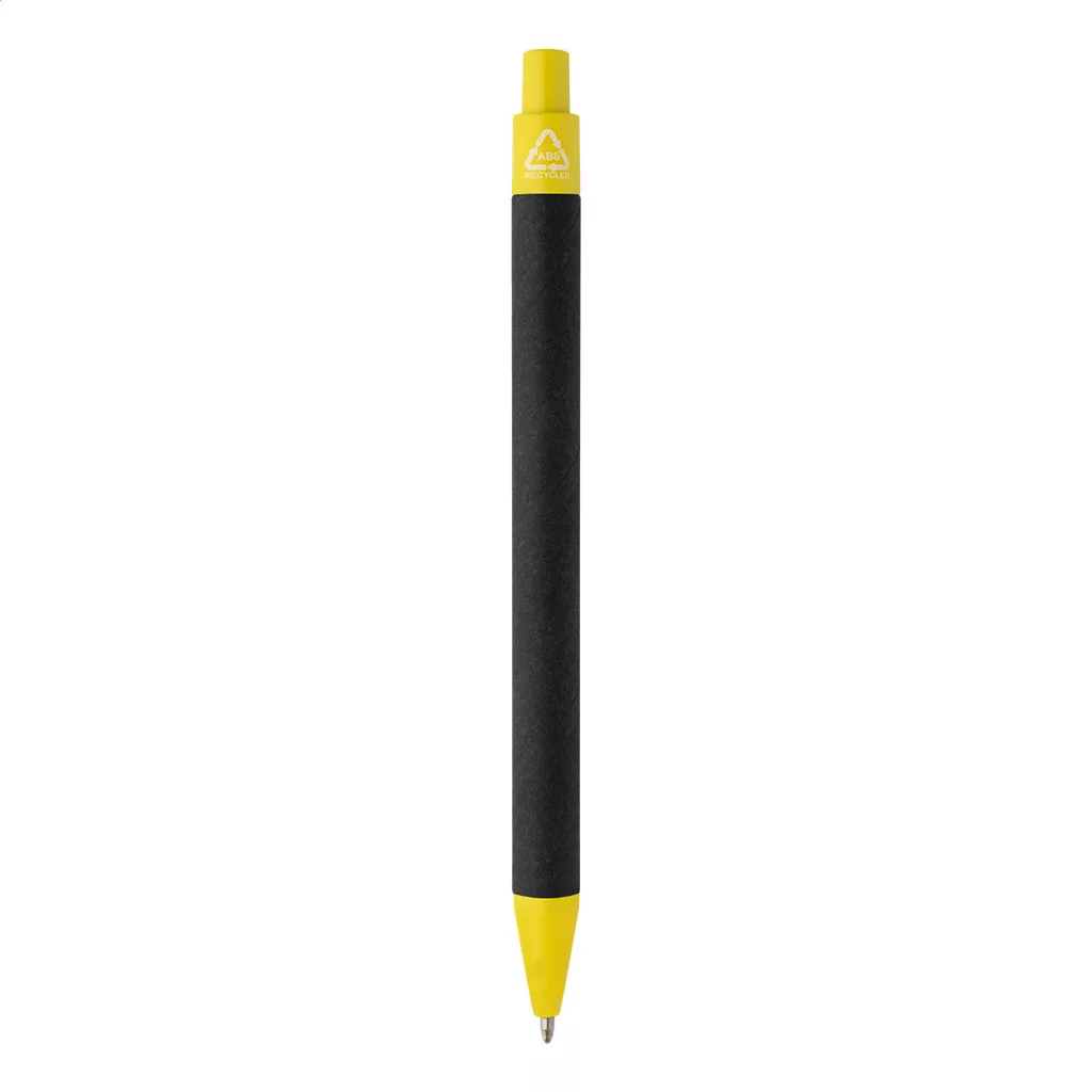 Újrahasznosított papírból készült golyóstoll fekete testtel és újrahasznosított ABS alkatrészekkel. Kék tollbetéttel.