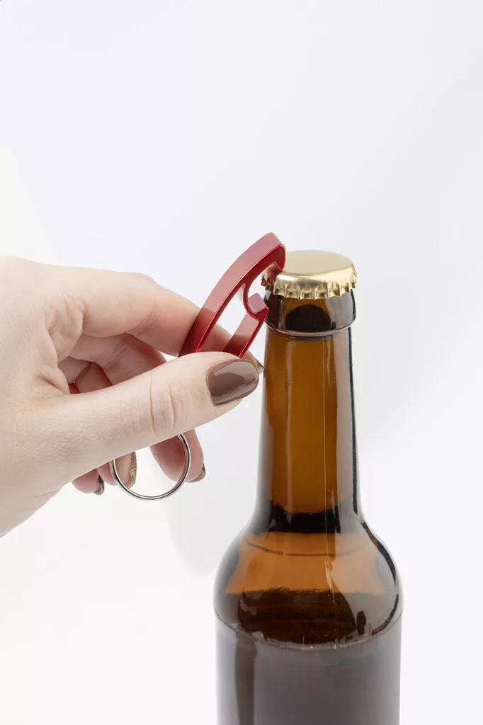 Újrahasznosított alumínium üvegnyitó fém kulcskarikával.