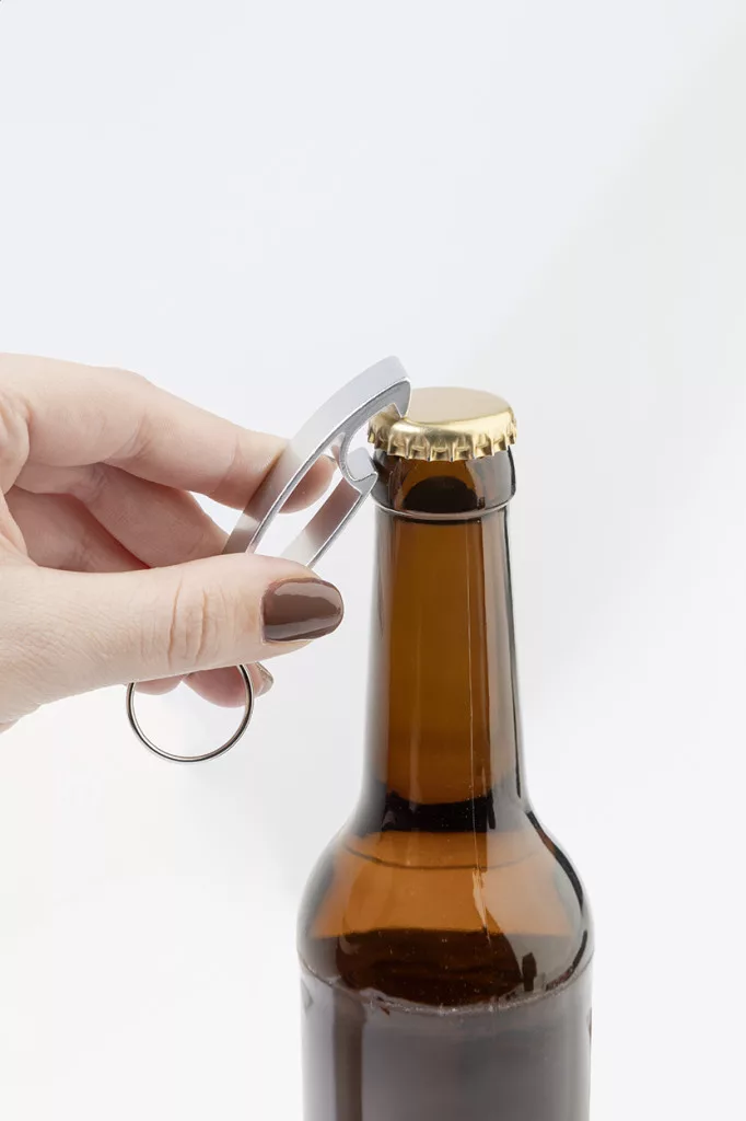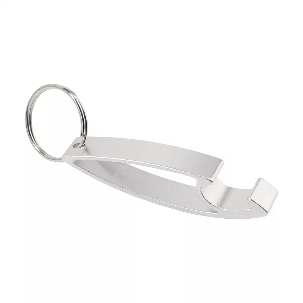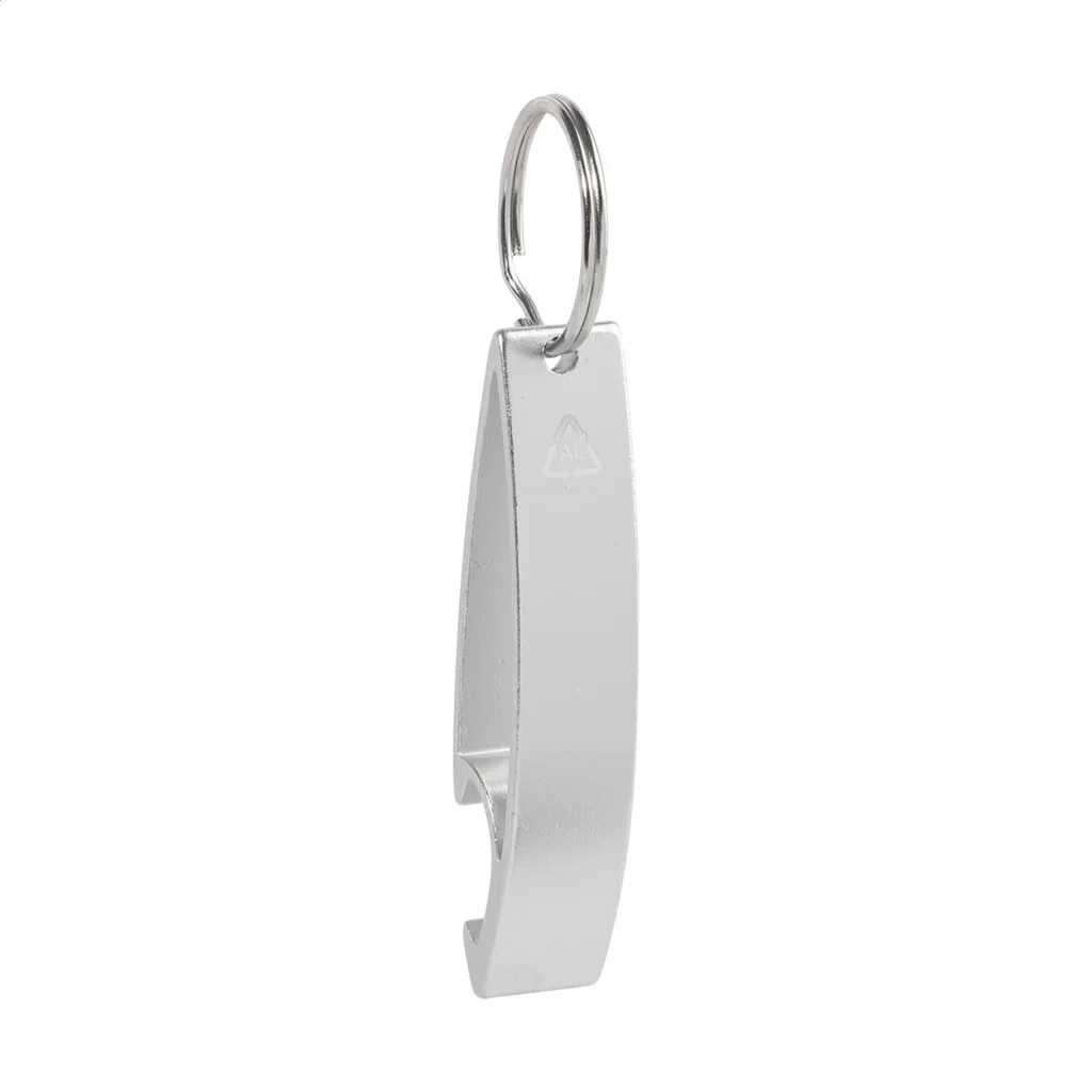 Újrahasznosított alumínium üvegnyitó fém kulcskarikával.